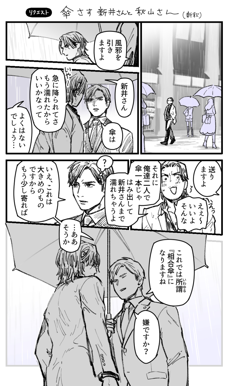 タクツキ☆quiet followDOODLE・新秋お題〈新井さんと秋山さんが傘さして歩いてるやつ〉ちなみにこの新秋は付き合ってません。新秋は雨が似合いますね!!リクエストありがとうございます!!! ##新秋 show all(+1 images) Tap to full screen (size:975x1650).Repost is prohibited Let's send reactions! freqpopularsnackothersPayment processing Replies from the creator Follow creator you care about!☆quiet follow タクツキPASTロム垢で放置してたメモも追加順番間違ってたのも修正しましたネタ反芻用初期ツイート(CP混在)やっぱりハマりたての頃の語りは自分のであっても元気いっぱい夢いっぱいでたのしい 34 タクツキDOODLEスカファイの夏 描いた! 5 タクツキPASTいつか清書はしたいな…って思ってはいるOTE系落書き最期の方ちょっとエチいしゅかんのかのうせい 10 タクツキPASTお題で「夢系谷村」をもらったけど夢を一切通ってこなかった人間ゆえ「夢とは…」ってなりながら描いたもののそんな気持ちで描いたものでいいのか?ってお蔵入りしたけどなんやかんや気に入ってるやつ 2 タクツキDOODLE・龍秋雰囲気エチ刺青好きそうだし刺青に嫉妬する龍司さんもいいよねって話 4 タクツキDOODLE・谷秋えっち習作通常状態の秋山さんは声色までコントロールしてる感じだけど余裕無くなったり本気になった時に感情そのまま声に乗ってるかんじもいいよねっていう話とえっち序盤は体力が残ってるので秋山さんもノリノリで優勢だけど後半になるにつれ体力尽きて谷村さんが優勢になって立場逆転する谷秋も良いわぁという話 8 recommended works なつきMOURNING何かが始まるかもしれない谷→秋 4 monmonTRAININGZhongli making milkshake for Aether.I think it does glowing jisa_jisa_jisaDOODLE谷秋はここに突っ込みます 13 jisa_jisa_jisaDONE秋山が神室町から消えた話(谷秋) 8 jisa_jisa_jisaDOODLEポッ谷秋 5 rosut_82DONE伏釘のクリスマス。ずっと欲しかったアクセサリーを🎁してもらって嬉しすぎてずっと眺めてる野薔薇ちゃんとそろそろ構ってほしくて指に触れる伏黒。なんとなく薬指に触れてる時間長くなってほしい。伏黒側にある🎁は、野薔薇ちゃんから。誕プレとクリスマス用(誕生日に会えなかったので) 3 阿仄利桠DOODLE您其实非常喜欢这个的吧 しょうやDONE前の続きというかオマケ四コマ。 2 uniDOODLE🐼むずぃ