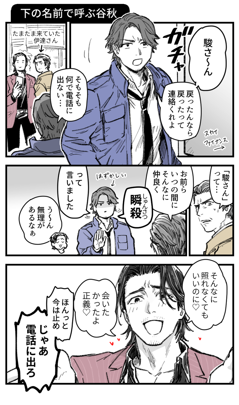 タクツキ☆quiet followDOODLE「仲が深まり切った谷秋の谷村さんに『駿さん』って呼んでほしい~」という気持ちになったので試しに描いてみた漫画。ついでに秋山さんに「正義」って呼んでもらった。 ##谷秋 show all(+4 images) Tap to full screen (size:975x1650).Repost is prohibited Let's send reactions! freqpopularsnackothersPayment processing Replies from the creator Follow creator you care about!☆quiet follow タクツキPASTロム垢で放置してたメモも追加順番間違ってたのも修正しましたネタ反芻用初期ツイート(CP混在)やっぱりハマりたての頃の語りは自分のであっても元気いっぱい夢いっぱいでたのしい 34 タクツキDOODLEスカファイの夏 描いた! 5 タクツキPASTいつか清書はしたいな…って思ってはいるOTE系落書き最期の方ちょっとエチいしゅかんのかのうせい 10 タクツキPASTお題で「夢系谷村」をもらったけど夢を一切通ってこなかった人間ゆえ「夢とは…」ってなりながら描いたもののそんな気持ちで描いたものでいいのか?ってお蔵入りしたけどなんやかんや気に入ってるやつ 2 タクツキDOODLE・龍秋雰囲気エチ刺青好きそうだし刺青に嫉妬する龍司さんもいいよねって話 4 タクツキDOODLE・谷秋えっち習作通常状態の秋山さんは声色までコントロールしてる感じだけど余裕無くなったり本気になった時に感情そのまま声に乗ってるかんじもいいよねっていう話とえっち序盤は体力が残ってるので秋山さんもノリノリで優勢だけど後半になるにつれ体力尽きて谷村さんが優勢になって立場逆転する谷秋も良いわぁという話 8 recommended works なつきMOURNING何かが始まるかもしれない谷→秋 4 jisa_jisa_jisaDOODLE谷秋はここに突っ込みます 13 jisa_jisa_jisaDONE秋山が神室町から消えた話(谷秋) 8 一月廿六日DONE身長198cmで見せパンで飯にこだわりがあるのでずんだどんはほぼ欲音ルコと言って差し支えない 2 meloncholibriPASTほくれおは兄貴の事務所に忍び込んだ見るのか?(y/n) まるむDOODLE30 おすすめデート 治安悪横丁、古城読み聞かせ 30 🏖🐬DOODLE--2024/12/12-- 布団干すMEMO定期ゲーム① いろいろ 21 まきまき太郎SPOILER #シャオぺんが消えた夏私の情緒に合わせてテイストが変わっていく落書きです⚠️ネタバレあり⚠️ 5