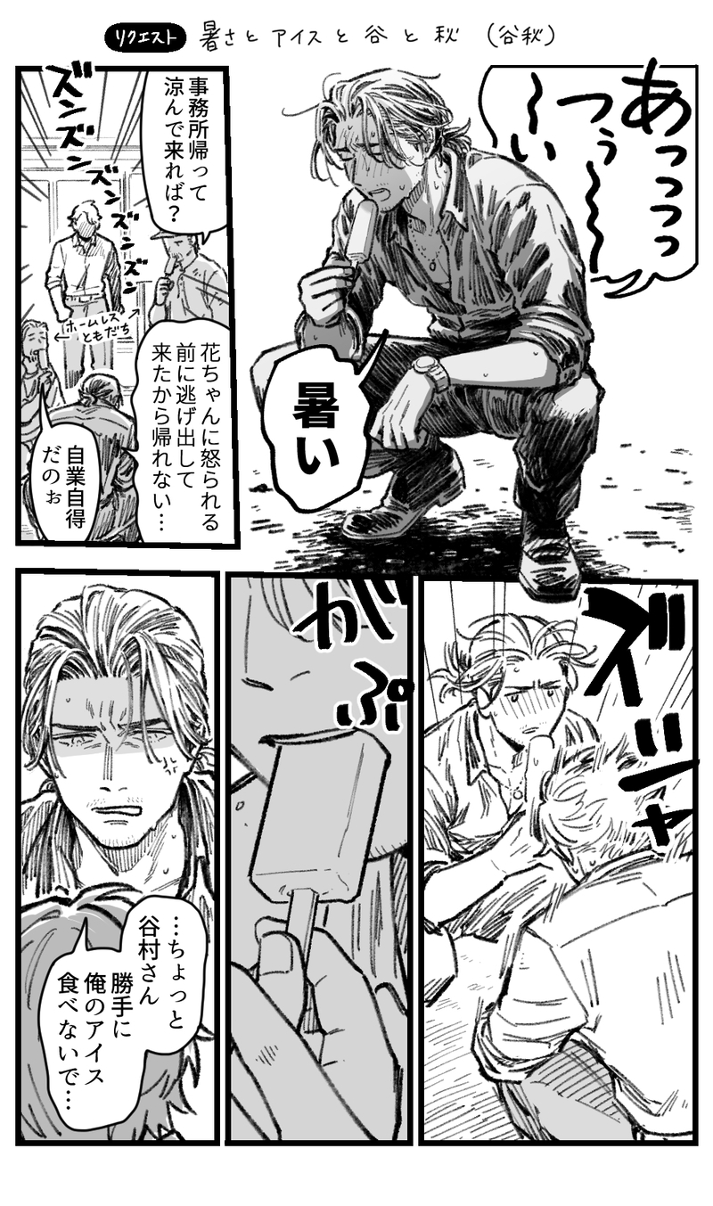 タクツキ☆quiet followDOODLE・谷秋食べ物を下ネタに絡めた表現があります。お題〈暑さに弱ってる秋山さんや谷村さん、アイス奪い奪われな谷秋(秋受)〉リクエストありがとうございます!!二人とも暑さのせいで思考力が鈍っているのでした。せっかくのアイスネタ…これでいいのか!?後日そういう時におねだりはするかもしれない。 ##谷秋 show all(+2 images) Tap to full screen (size:975x1650).Repost is prohibited Let's send reactions! freqpopularsnackothersPayment processing Replies from the creator Follow creator you care about!☆quiet follow タクツキPASTロム垢で放置してたメモも追加順番間違ってたのも修正しましたネタ反芻用初期ツイート(CP混在)やっぱりハマりたての頃の語りは自分のであっても元気いっぱい夢いっぱいでたのしい 34 タクツキDOODLEスカファイの夏 描いた! 5 タクツキPASTいつか清書はしたいな…って思ってはいるOTE系落書き最期の方ちょっとエチいしゅかんのかのうせい 10 タクツキPASTお題で「夢系谷村」をもらったけど夢を一切通ってこなかった人間ゆえ「夢とは…」ってなりながら描いたもののそんな気持ちで描いたものでいいのか?ってお蔵入りしたけどなんやかんや気に入ってるやつ 2 タクツキDOODLE・龍秋雰囲気エチ刺青好きそうだし刺青に嫉妬する龍司さんもいいよねって話 4 タクツキDOODLE・谷秋えっち習作通常状態の秋山さんは声色までコントロールしてる感じだけど余裕無くなったり本気になった時に感情そのまま声に乗ってるかんじもいいよねっていう話とえっち序盤は体力が残ってるので秋山さんもノリノリで優勢だけど後半になるにつれ体力尽きて谷村さんが優勢になって立場逆転する谷秋も良いわぁという話 8 recommended works jisa_jisa_jisaDOODLE谷秋はここに突っ込みます 13 jisa_jisa_jisaDONE秋山が神室町から消えた話(谷秋) 8 jisa_jisa_jisaDOODLEポッ谷秋 5 sushiDOODLE瀬名泉 女体化 リクエスト 𝕃𝔸𝔾𝕀DOODLEレザベネ🐺👍『水分補給』Xに上げたら警告受けたのでこっちに上げ直します😭解せぬ… 2 brJVvzCXvc55060DONEお題箱!ありがとうございました!!!擬人化+女装…?💩と🦖 2 はるいちDONE毎月12日は12(わんにゃん)の日を勝手にやってますログ忘猫×らおずの謎時空。少々裸体。ネタが湧いたら12日更新。12月12日分更新意地でも雪に触れたくないわんじ 10 Do not Repost・東龍DOODLEお題【ゆず】。ゆず湯すら、足湯なオージュ先生。 ARM42313321DOODLE公安ズ花葬標本落書き🩸表現ある げんみ❌ 3