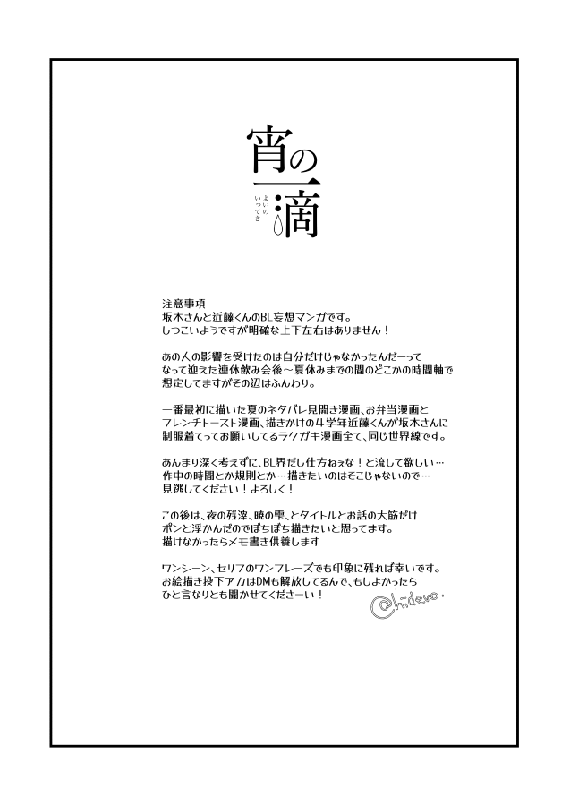 hidero2nd☆quiet followDONEBL🌸注意!推しエモの2人が酔っ払ってチューする話が完成したので良かったら読んで!BLなので注意事項読んで自衛してください!縦スクロール前提じゃないので読みづらくて申し訳ない、あとセリフが手書きなのはiPadでセリフ打つのちょっとめんどくさいなと思って…紙の本にまとめる気になったらそん時に直します ##BL🌸 show all(+28 images) Tap to full screen .Repost is prohibited Let's send reactions! freqpopularsnackothersPayment processing Replies from the creator Follow creator you care about!☆quiet follow hidero2ndDOODLEBL🌸岡岩…崎さんは美少女と書いて漢だと思ってるんで隙あらば逆転を狙ってそうな受かなとか…想いが通じたらてっとりばやくセッするために外堀埋めてる間に自分で慣らしてそうだなとか…なんせ時間ないしね、いやBL界の受は初めてでもイケるんですよなんの話ですかこれは!妄想話のオレもだ、のとこですね hidero2ndTRAININGポイにGIFもアップできるって言うのでラクガキ途中でエッチな寄り道したタイムラプスをお試しにあげてみます hidero2ndDOODLE🐰さんちの押入れから借りてきた(承諾済)サンタコス&リボンチューブトップ&B地区チラッ、なiwskさんです🫐✨クリスマスもクソもない、とくるめの下宿に帰ってきた岡の見た夢か幻か本物か…解釈はお任せ致します…😌😌😌 hidero2ndREHABILIBL🌸坂近/最近えっちなやつ描いてない気がして…長い賢者タイムでした。受坂さんを描きたい欲はちばさんが満たしてくれるので攻坂さんを描きたいなって。 hidero2ndDONEBL🌸エアブーリク絵/坂近/チューしてます/絡みお任せだったので、前にちょろっと描いたちばさんに邪魔されまくってなかなか進展しない世界観の坂近で描かせてもらいました👍 hidero2ndDOODLE滑り込みハロウィン🎃🎃👻👻🧟♀️🧟🧟♂️