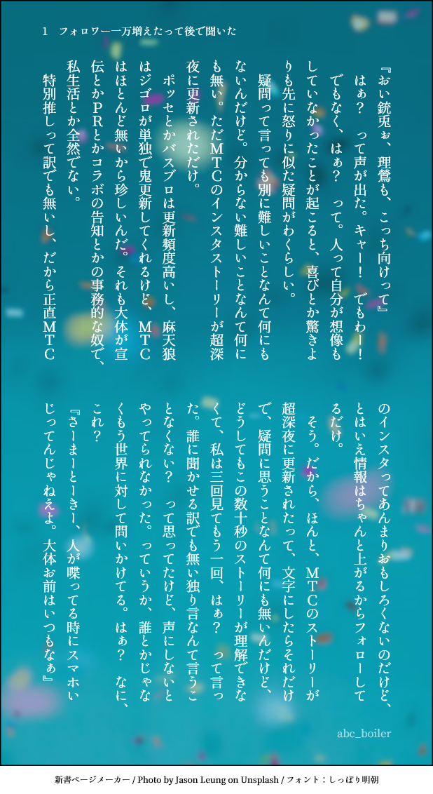 abc_boiler☆quiet followDONE🎤/MTC show all(+5 images) Tap to full screen (size:618x1132).Repost is prohibited Let's send reactions! freqpopularsnackothersPayment processing Replies from the creator Follow creator you care about!☆quiet follow abc_boilerDONE🎤/MTC。2行で心を掴むタグのやつ。 4 abc_boilerDONE呪術/五条と夏油 4 abc_boilerDONE呪術/灰原と七海 5 abc_boilerDONE🏀/高緑台詞だけ 7 abc_boilerDONEtws/アズールがジェイドを語る 4 abc_boilerDONE🏀/花宮 4 recommended works 水無瀬よるDOODLE自分を応援… おきなDOODLEハマってしまった…♦️が好きです部屋着ちょっと捏造してます(2枚目加工無し)#twst 2 黒猫ฅ•ω•ฅMAIKINGまだ途中で筆置いてるやつ うぇりDOODLE悪い顔好き 🧂🧂🧂DONEhttps://poipiku.com/939446/2485771.htmlおまけその2 イベント衣装デュ♠ うぇりDOODLEイデア氏マブダチ妄想落書き 3 めもこDOODLEイドデュオ魔法の、フロイドが楽しそうで何よりに興奮した落書き。 tugumi_konno_opDOODLE ちゃこDONEカリム推しの妹の誕生日に描いたもの🦦❤