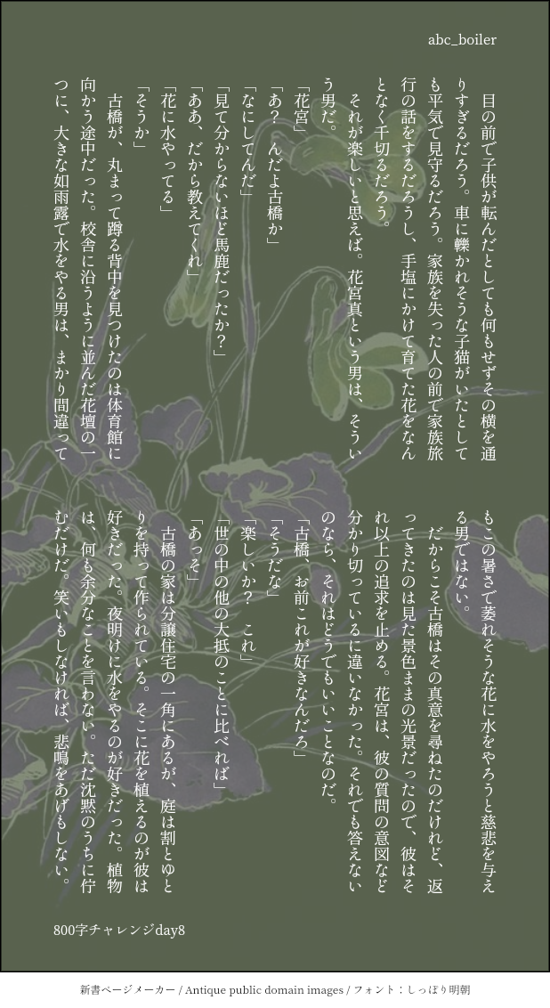 abc_boiler☆quiet followDONE🏀/花宮 #黒バス blackBus show all(+3 images) Tap to full screen (size:618x1132).Repost is prohibited Let's send reactions! freqpopularsnackothersPayment processing Replies from the creator Follow creator you care about!☆quiet follow abc_boilerDONE🎤/MTC。2行で心を掴むタグのやつ。 4 abc_boilerDONE呪術/五条と夏油 4 abc_boilerDONE呪術/灰原と七海 5 abc_boilerDONE🏀/高緑台詞だけ 7 abc_boilerDONEtws/アズールがジェイドを語る 4 abc_boilerDONE🏀/花宮 4 related works (◜௰◝)TIRED事故り過ぎて放置してるやつ。 かい@日記のような練習帳DOODLEねんどろ火神くん限定BOX予約した……たのしみすぎる……てんし…… (◜௰◝)DOODLE猫又宮。 かい@日記のような練習帳DOODLEねんどろ火神くん限定BOX予約した……たのしみすぎる……てんし…… かい@日記のような練習帳PROGRESS日向くん かい@日記のような練習帳DOODLE日向くん。 かい@日記のような練習帳PROGRESS日向くん 水無瀬よるPROGRESS進捗だめです。 かい@日記のような練習帳DOODLE日向くん。 recommended works 逆十字 色DONEぺっ、 のらこDOODLE黒子っち/黒バス fushimatsu_nariDOODLEうぇるかむ~~~ 2 彩紋 つおんTRAININGtwstサバナトップ2 2 うたDOODLEワンショは1万マドルからっス♡💵💵 燐音(リンネ)DOODLE 🌈とどり🔫PASTオクタな女の子たち❤︎ 狼々(ろろ)DOODLEうちの🐺なりきり花婿さん。清書未定で勢いで描きました。恋愛はもっと真剣なもん発言出てきて最高でしたね。まさかこんなに出るなんて思っていなかったので(めっちゃ嬉しい) kuroeggMAIKING🎃♠︎一部他パーツはあとで