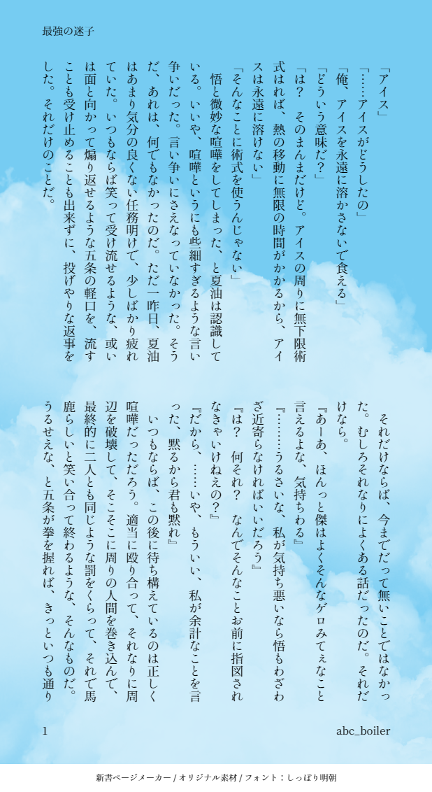 abc_boiler☆quiet followDONE呪術/五条と夏油 #呪術 magic show all(+3 images) Tap to full screen (size:618x1132).Repost is prohibited Let's send reactions! freqpopularsnackothersPayment processing Replies from the creator Follow creator you care about!☆quiet follow abc_boilerDONE🎤/MTC。2行で心を掴むタグのやつ。 4 abc_boilerDONE呪術/五条と夏油 4 abc_boilerDONE呪術/灰原と七海 5 abc_boilerDONE🏀/高緑台詞だけ 7 abc_boilerDONEtws/アズールがジェイドを語る 4 abc_boilerDONE🏀/花宮 4 related works no nameDONE呪術夢モブにナンパされてる🌸を助ける→付き合う夏|伏|五|虎 2 えびな ちいずDONE呪術直哉相手はお任せで(手だけなので)舌掴まれる受が性癖 fuji_121DONE五条悟と仲間達の存在しないウスイブック くろすけDONE夏油(高専?)夢 由汰ゆたんぽDOODLE夏油傑 練習 えみ。DOODLE虎杖くんをひたすら犯し続けるじゅんぺー(呪霊体)を描きたい。虎杖くんは後悔の念から逆らえないし逆らわないのよ。(*´Д`)ハァハァ 由汰ゆたんぽDOODLEアニメ20話:少し乱暴しようか記念 傑ver カップルって一緒にいると言葉似てくるっていう、、指ポキ一本ずついくタイプだといい。 きざきPROGRESS悠仁からの温度差よプリケツよりギュッケツ派ポーズトレスもうちょっと描き込も no nameDONE呪術夢じゅじゅ女子ズの下着考察、、🤔❤️(すごい雑でごめんなさい)野|真i希|冥|三|真i依|桃 2 recommended works (◜௰◝)TIRED事故り過ぎて放置してるやつ。 楸ロコDONE気力が持たなかっ…_(┐「ε:)_ 狼々(ろろ)DOODLE顔だけなんちゃってスカラビア。フェアリーガラ衣装可愛かった… 3 🌈とどり🔫PASTジャミルpuおめっ!! 1oo1ool8DOODLEとても好き&とても難しい 狼々(ろろ)DOODLE🐺くん久々に描いてみたらなんだか迷走中です 楸ロコDOODLE💀🌙⭐️💫🪐 DUST BOXDOODLE もちごめPROGRESSポ♥なんだそのアホ毛は。どっから生えてんだオメェ。超久しぶりにGペンペン使ったらめちゃくちゃ筆圧で描けてすごい強弱付けやすいし描きやすい。