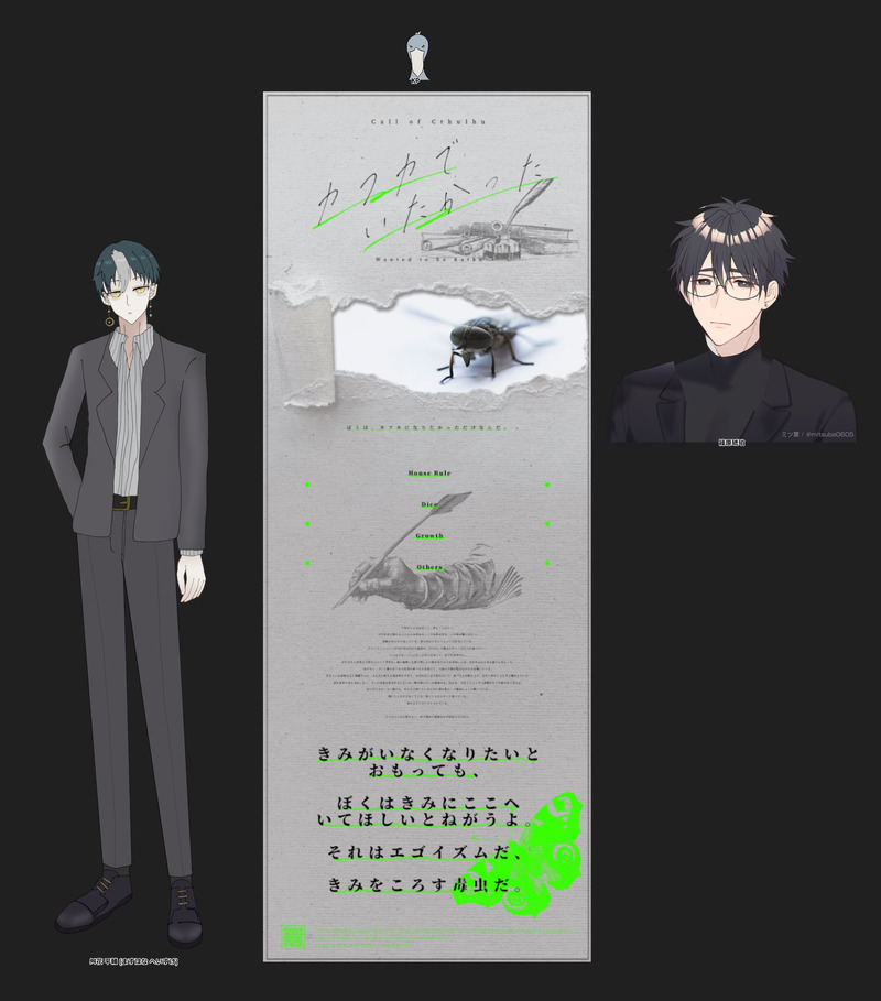 ザザリ☆quiet followSPOILER◇CoC カフカでいたかった◆KPC/KP 篠原 琥珀/諏訪ちかこ◇PC/PL 舛花 平輔/ザザリ(敬称略)◆END22024.2.15 Tap to full screen (size:1802x2048).Repost is prohibited Let's send reactions! freqpopularsnackothersPayment processing Replies from the creator Follow creator you care about!☆quiet follow ザザリSPOILER◇CoC 願うは秘曲、待つは魔睡 ◆KP ものむ◇PC/PL HO1:桑名 瞭文/ミヤシゲ HO2:久木 詩寧/ザザリ(敬称略)◆2025.10.14- ザザリSPOILER◇CoC ククルカンの傍証◆KP 長柄 竜◇PC/PL HO1 チラム:四十八願 陽翠/ザザリ HO2 バラム:鷲見 真宙/ミヤシゲ(敬称略)◆1生還1ロスト2025.10.12-10.13 3 ザザリSPOILER◇CoC franc◆KP あまゆう◇PC/PL 蟻波 宏珠/ザザリ(敬称略)◆シナリオクリア2025.10.5 ザザリSPOILER◇CoC カノヨ街◆KP ザザリ◇PC/PL HO壱番地の標本:鱗/いち HO弐番地の貼紙:仮爍/モヤ HO参番地の時計:絡々/ネオ HO肆番地の鳥居:珀狛/えび(敬称略)◆エンド4 Ex2025.10.4 ザザリSPOILER◇SEVEN STARS & PEACE◆KP ザザリ◇PC/PL HO SEVEM STARS:Roderic・Brown/猫月 HO PEACE:Laguel/ちとせ(敬称略)◆シナリオクリア2025.9.30-10.07 ザザリSPOILER◇CoC 一千年後に笑う◆KPC/KP 佐藤 通久/えび◇PC/PL 朧 苓/ザザリ(敬称略)◆END12025.9.10-9.27