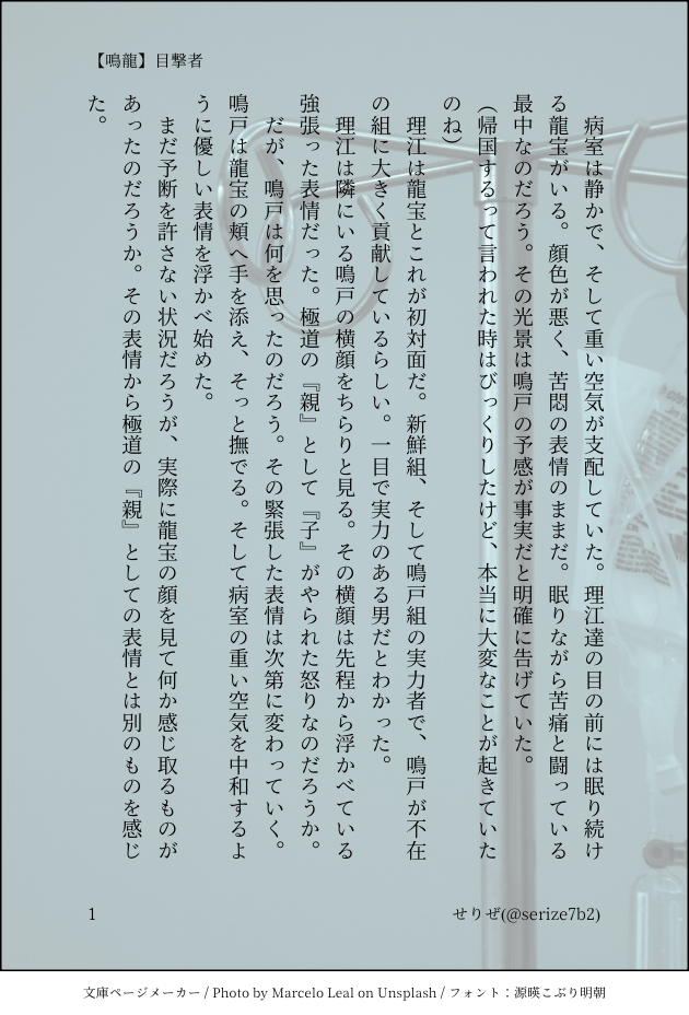 二次創作でBL小説書く人のアカウントです。Twitterで上げた画像小説の保管庫。たまに絵。