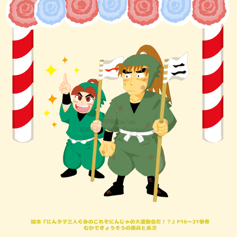 「にんじゃの 学校の むかできょうそうは、(中略)なんとなんと ほんものの いきている おおムカデを はしで つまんで 走る、と いうものなのです。」(本文引用)