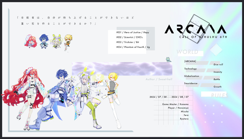 coc_tera☆quiet followMEMO❚ ᶜᴬᴵᴵ ᴼᶠ ᶜᵀᴴᵁᴸᴴᵁ 〖 ARCANA 〗|ᴷᴾ かなめさん|ᴴᴼ1 はのみやちゃん( Hapy )|ᴴᴼ2 みすけちゃん( CHCl3 )|ᴴᴼ3 てら( Bit )|ᴴᴼ2 りょ~たろさん( 4g ) --- 全員生還 𝙨𝙘𝙚𝙣𝙖𝙧𝙞𝙤 𝙚𝙣𝙙 #てら卓報告 Tap to full screen (size:5000x2850).Repost is prohibited Let's send reactions! freqpopularsnackothersPayment processing Replies from the creator Follow creator you care about!☆quiet follow coc_teraPROGRESSCosmosƆREatiOn ネタバレ、現行未通過×🔒okラフ 差し替えたい~~~ッ coc_teraSPOILERCosmosƆREatiOn ネタバレ、現行未通過 閲覧非推奨×🔒ok coc_teraSPOILERたむどめ ネタバレ、現行未通過×パス:ok coc_teraMEMO coc_teraSPOILER掠奪アルマディナ・アルファーデラ ネタバレ、現行未通過×らくがきです🔒はok coc_teraMEMO❚ 𝐜𝐚𝐥𝐥 𝐨𝐟 𝐜𝐭𝐡𝐮𝐥𝐡𝐮 〖 掠奪アルマディナ・アルファーデラ 〗2陣|ᴷᴾ てら|ᴴᴼ1 ななせさん( ネバーランド )|ᴴᴼ2 陽炎さん( Dr.アトランティス )|ᴴᴼ3 もちこさん( タモアン )|ᴴᴼ4 はのみや( ザナドゥ ) --- 全員生還 | END A related works coc_teraMEMO❚ 𝐶𝒂𝒍𝒍 𝒐𝒇 𝐶𝒕𝒉𝒖𝒍𝒉𝒖 〖 黄身と蜂蜜 〗|ᴷᴾ てら( 芒崎 月露 )|ᴾᴸ イオさん( 御酒坂千代 ) --- 𝙎𝙘𝙚𝙣𝙖𝙧𝙞𝙤 𝙀𝙣𝙙 1 / 両生還 coc_teraMEMO❚ 𝕔𝕒𝕝𝕝 𝕠𝕗 𝕔𝕥𝕙𝕦𝕝𝕙𝕦 〖 Hazy Lazy Crazy 〗|𝕂ℙ 🏇ひよこさん( 忤 心躊 )|ℙ𝕃 🐒ミキクさん( 呻 日紅 )|ℙ𝕃 🐯ゆごさん( 演 明里 )|ℙ𝕃 🐰てら( 冒 碧兎 ) --- 𝙎𝙘𝙚𝙣𝙖𝙧𝙞𝙤 𝙀𝙣𝙙 coc_teraMEMO❚ 𝕔𝕒𝕝𝕝 𝕠𝕗 𝕔𝕥𝕙𝕦𝕝𝕙𝕦 〖 ジオラマの怪物 〗|ᴷᴾ はのみやちゃん|ᴴᴼ1 みすけちゃん( 御厨 煌 )|ᴴᴼ2 てら( 南百瀬 栞暖 ) --- 両者生還 | END A-Ex 𝙨𝙘𝙚𝙣𝙖𝙧𝙞𝙤 𝙚𝙣𝙙 coc_teraMEMO❚ 𝐶𝒂𝒍𝒍 𝒐𝒇 𝐶𝒕𝒉𝒖𝒍𝒉𝒖 〖私立花ヶ丘高校秘密倶楽部〗|ᴷᴾあんと/わらべ|ᴾᴸ 松 みすけ/真剱千李梅 かず/小梅歌詠桜 なもけ/天ノ川咲耶藤 ひぃたろ/永廻舞宵菖蒲 はち/菖蒲十生蝶 うにみ/獅子王ニコ猪 けい/猪ノ口萩梧月 てら/芒崎月露菊 イオ/御酒坂千代鹿 yl/冬隣かせぎ燕 めるひぇん/燕像従翔鳳 人間/梧桐鳳凰舞 coc_teraMEMO❚ 𝐶𝐴𝐿𝐿 𝑂𝐹 𝐶𝑇𝐻𝑈𝐿𝐻𝑈 〖 猫にJealousy(ジェラシー) 〗|ᴷᴾ てら|ᴾᴸ ちくりんさん --- END A 𝙨𝙘𝙚𝙣𝙖𝙧𝙞𝙤 𝙚𝙣𝙙 coc_teraMEMO❚ ℂ𝔸𝕃𝕃 𝕆𝔽 ℂ𝕋ℍ𝕌𝕃ℍ𝕌 〖 虚校の餞 〗|ᴷᴾともん|ᴾᴸ 国 柳邉 涯/いたる英 雪中寺 カレン/うにゅみかん社 於田 豹史郎/てら数 三上 空/なもけ音 音無 紅花/めるひぇん化 眩明黎 麻怯/わいえる体 人本 育/人間家 胡桃沢 梓紀/イオ美 枯尾 芒/ゆっきー保 鹿屋 千染/ひぃたろ coc_teraMEMO❚ 𝕔𝕒𝕝𝕝 𝕠𝕗 𝕔𝕥𝕙𝕦𝕝𝕙𝕦 〖 イースの偉大なる図書館へようこそ! 〗|𝕂ℙ 🏇ひよこさん( 忤 心躊 )|ℙ𝕃 🐒ミキクさん( 呻 日紅 )|ℙ𝕃 🐯ゆごさん( 演 明里 )|ℙ𝕃 🐰てら( 冒 碧兎 ) --- 𝙎𝙘𝙚𝙣𝙖𝙧𝙞𝙤 𝙀𝙣𝙙 coc_teraMEMO❚ 𝓒𝓐𝓛𝓛 𝓞𝓕 𝓒𝓣𝓗𝓤𝓛𝓗𝓤 〖 THESEUS 〗|𝙆𝙋 ちゅんさん|𝙃𝙊1 ひるさん( 伊冨貴 太陽 )|𝙃𝙊2 すみの( 天野 日和 )|𝙃𝙊3 そぶ茶さん( 魚虎 倖 )|𝙃𝙊4 てら( 渡来 冴空 ) --- 𝙀𝙣𝙙1 全員生還 coc_teraMEMO❚ 𝕔𝕒𝕝𝕝 𝕠𝕗 𝕔𝕥𝕙𝕦𝕝𝕙𝕦 〖 ジオラマの怪物 / 閑話幕間 〗|ᴷᴾ はのみやちゃん|ᴴᴼ1 みすけちゃん( 御厨 煌 )|ᴴᴼ2 てら( 南百瀬 栞暖 ) --- 全話 𝙨𝙘𝙚𝙣𝙖𝙧𝙞𝙤 𝙚𝙣𝙙 recommended works wakababiboDOODLE【五伏】殴り書き ポイピクミッシェルさんDONE月イチ企画第三弾です。「匂い」の相性ってとっても大事らしいです。そんなsgoのお話です。ちょっとえちちなので大人の方限定です。18歳以上ですか? 3600 viclanlingCAN’T MAKE说勘r18,有点噩梦说元素 おれんじPAST聖剣伝説レジェンドオブマナ、エスカデ編本の再録です。 27 だだだDONE悟いろ35話からの怒涛の展開半端なかったね……36話でフレンディがノーモーションのヘルプキラリンアニマルスワンで羽生やして救出したの最高だったマロありがとうございました! ゆきのDOODLEナシちゃんにギネちゃんのお洋服を着せたいという願望が出てしまいました…(パが来るまで残り1秒)苦手な方は回れ右した方がいいかもです…!(ふりふり描くの苦手…) 富 田DOODLE mimiy_mcDONEナルミツまとめ 6 未定🍑PROGRESS一回休憩挟むと、なんかぜんぶだめだめに見えてきてつら…🫠