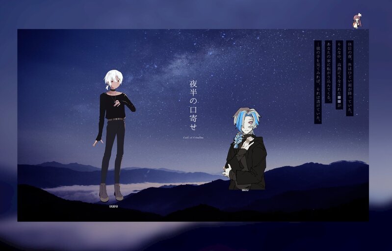 メメちゃん☆quiet followPAST2024.10/20CoC『夜半の口寄せ』KP/いるさんPC/PL神喰自 若(しんしょくじ もころ)/メメKPC/PL百鬼 銀(なぎり ぎん)/いるさん #メメTRPGログ Tap to full screen (size:1492x956).Repost is prohibited Let's send reactions! freqpopularsnackothersPayment processing Replies from the creator Follow creator you care about!☆quiet follow メメちゃんDONE25.10/17CoC『ナッツシュガーパイに君の名をひとさじ』KP:🧞♂️KPC:Brynlee・AaronPC/PLApricia Solerna/🍣Emil・Bud・Pizzicato/🐊Chaton=Violet/🤍Leucothea Marinetta/🪼Jia Lee Jigglyford/🍑Jin・Lie・Shepherd/🌿 メメちゃんDONE25.9/27CoC『狂っちゃうほど寿司がSUSHI!!』KP:さけさくらさん🍣PC/PL🔥Brynlee・Aaron/いっどさん⚡️Emil・Bud・Pizzicato/ふみやさん💧Leucothea Marinetta/アマリさん🧊Jin・Lie・Shepherd/メメDステス継続 メメちゃんDONEジン 表情差分たち(ネタバレなし) 12 メメちゃんDONE25.9/24CoC『DUR:夢術師たちのララステス』KP:aenPL:きょんこ、いっど、ももやま、さけさくら、238、きさき、艾メメ、餅 春汰、目鳥、アマリ、10don、椋崎(敬称略)END:B 12生還1ロスト メメちゃんDONE25.9/17CoC『ディープブルーにキラめいて』KP:椋崎さんPC/PLHOアイドル 佐藤 糸(さとう いと)/魚木さんHOマネージャー 夜昼 想夢(よひる そうむ)/メメ情緒めちゃくちゃ メメちゃんPASTVの絵(気持ち悪くなったら消す) 31 related works メメちゃんPAST2024.5/26CoC6『胡蝶の夢は今宵も』KP:かきくうさんPC/PL小屋隅 芽絵(おやすみ めえ)/甘エビさん織本 紫桜(おりもと しおう)/ロイトさんシメン・ソッカ/メメお疲れ様でしてよ〜!いい夢 メメちゃんPAST2024.6/9CoC6『U、或いは』KP:かきくうさん PC/PL神楽 優(かぐら ゆう)/まりあーじゅさん鬼灯 瑠璃(ほおづき るり)/しるばにあさん比翼 連理(ひよく れんり)/メメ メメちゃんPAST2024.4/12CoC6『恋より深い海』END4KPC/KP:伊波 楓華(いなみふうか)/ぽんさんPC/PL:天使 英明(あまつか ひであき)/メメ メメちゃんPAST2024.4/2CoC6『笹食ってる場合じゃねえ!!』KP:ちよさんPC/PL高崎ゆの(たかさき ゆの)/ぱんださん多事多 難端(たじた なんた)/メメ メメちゃんDONE25.10/17CoC『ナッツシュガーパイに君の名をひとさじ』KP:🧞♂️KPC:Brynlee・AaronPC/PLApricia Solerna/🍣Emil・Bud・Pizzicato/🐊Chaton=Violet/🤍Leucothea Marinetta/🪼Jia Lee Jigglyford/🍑Jin・Lie・Shepherd/🌿 メメちゃんPAST2024.5/24CoC6『REDLINE DEADLINE』KP:めりのさんPC/PL:海千山千 空臥(ふるて くうが)/トモさん皐月 十々(さつき とと)/ミヤノさん曖昧 モコ(あいまい もこ)/メメ メメちゃんPAST2024.4/19CoC6『狸馬鷹の国』エンドAKP:かきくうさんPC/PL: 曖昧 モコ(あいまい もこ)メメ メメちゃんDONE2/17CoC『I SCREAM』KP:めりのさんPC/PL:🐺トモさん/八潮 瑠璃(やしお るり)👹ミヤノさん/栾 雨轩(ラン ユシェン)👼メメ/ウサムーン・ショウかいマホ継続でした! メメちゃんPAST2024.4/17エモクロアTRPG『マジックブルーの境界線』DL:KizuyuuさんPL:乃瀬ゆきなさん・ミヤノさん・メメ recommended works hoshi_c77PROGRESS燐一の煩悩本進捗 2 メド。DONEメイド服ぅららちゃん メメちゃんPASTデータ整理してたら出てきた昔の版権絵ちょっとあげる。気が向いたら消す。ジャンルさまざま 最初の4枚は描いて〜て言われたやつです 16 kamijo_gDOODLE花沢勇作(現代のすがた)暑がりなのにタートルネック着てる不可解な人、好きだ jmilytm95DOODLE治侑 2 ahp_oiDOODLE若鷲の双眸 現行・未通過❌ 7 🐟️( ’-’ 🌭)DOODLE三元牌陰陽師【追記】友達がいじってくれて(https://x.com/ikki_oshie_777/status/1870476985845383615?t=dF4BFat5-Ubw0o-O8cJ6qQ&s=19)さらに打ち込めるようゲームになりました😲https://unityroom.com/games/sakanapan_project楽しいので遊んでください♪(🀄️⸝⸝) こと鍋DOODLEpcくれは 2 umibantiDOODLEDOPPEL現行未通過❌お気に入り絵