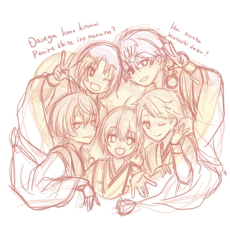 ②線画その1。ここで5人のバランス見ながらひとりずつ拡大縮小でいっぱい修正。