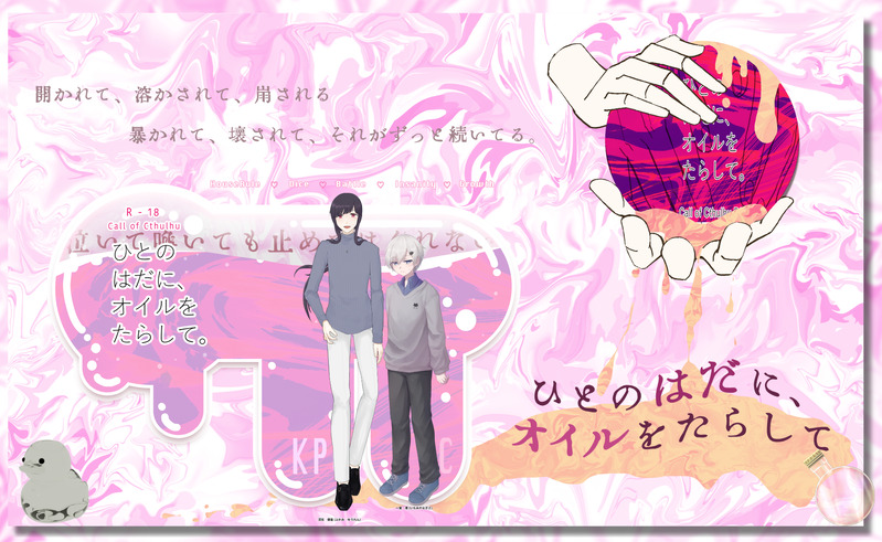 yinghua_trpg☆quiet followINFO25/11/08CoC『ひとのはだに、オイルをたらして。』◆KPC:深見優蓮/とりさん◆PC:一宮渚/玖桜すっごかった。とんでもなかった。たいへんでした。いや、本当にすごかった。ありがとうございました。期待を超えてきました。 Tap to full screen (size:1983x1219).Repost is prohibited Let's send reactions! freqpopularsnackothersPayment processing Replies from the creator Follow creator you care about!☆quiet follow yinghua_trpgINFO25/11/08CoC『ひとのはだに、オイルをたらして。』◆KPC:深見優蓮/とりさん◆PC:一宮渚/玖桜すっごかった。とんでもなかった。たいへんでした。いや、本当にすごかった。ありがとうございました。期待を超えてきました。 yinghua_trpgINFO25/10/25CoC『星が落ちた日』◆KP:Orielさん◆HO1PL:玖桜◆HO2PL:とりさんお部屋の演出がすっごかった……、度々「わー!」「うおお……!」してました。ありがとうございました!! yinghua_trpgINFO25/10/12CoC『思い立って5分で回せるデートシナリオ第4弾!温泉旅館編 春』◆KPC:日隅とわ/玖桜◆PC:ツヴァイ フィガーダッへ/とりさんボリュームがすごすぎてたっぷりデートしてきました!! yinghua_trpgINFO25/09/27思い立って5分で回せるデートシナリオ第10弾!水族館編◆KPC:穂村泉己/とりさん◆PC:犬飼八尋/玖桜唐突にデートに誘われたのでノリノリで行ってきました!!この二人もう一周年なのか……。 yinghua_trpgINFO25/09/15CoC『ペンギンフロートナイト』KP:OrielさんPC:緋野明日香/玖桜応援:とりさんEND:5-EXです。出目が……、出目が……。お二人ともありがとうございました、強く生きます。 yinghua_trpgINFO25/08/30CoC『君のためのヒポクリシー』◆KPC:日隅とわ/玖桜◆PC:ツヴァイ フィガーダッへ/とりさん無事にヘタクソ監禁できました。ありがとうございました!