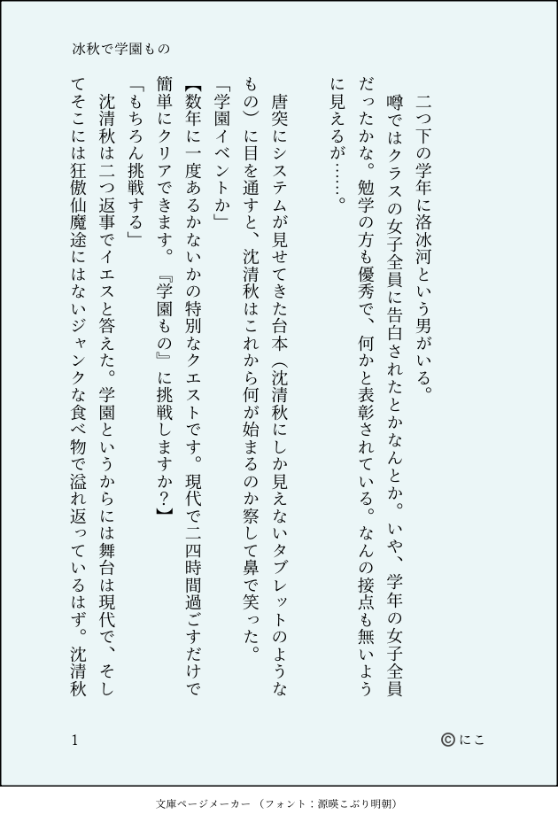 2こ(にこ) @orororo2020 中華BL♡とうの昔に成人済み。字書き。ここにはMXTX作品の二次創作をアップする予定です。 ☆quiet follow Yell with Emoji POIPOI 21