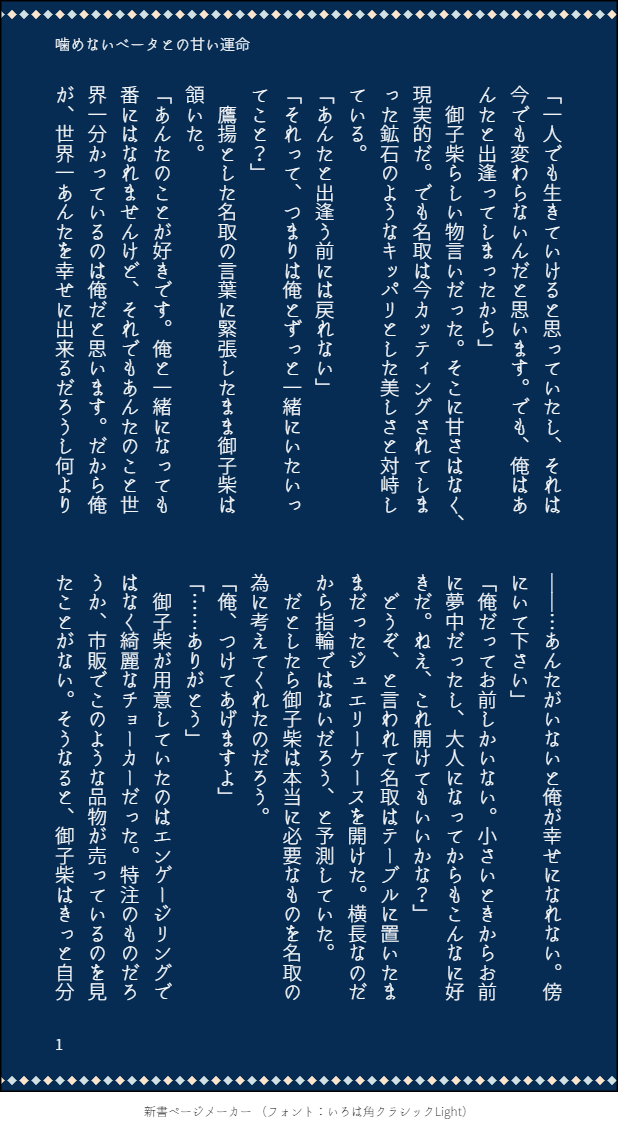 ___sakurara___☆quiet followPROGRESSβ×Ωの結婚。オメガへのプロポーズにネックガードっていいな、と思った。何もかも飛ばしてプロポーズシーン書いちゃったえへへ。 ##噛めないベータとの甘い運命 show all(+2 images) Tap to full screen (size:618x1132).Repost is prohibited Let's send reactions! freqpopularsnackothersPayment processing Replies from the creator Follow creator you care about!☆quiet follow ___sakurara___TRAININGセンチネルバース練習。異世界トリップで攻めが騎士で兎、受けは猫。 3 ___sakurara___PROGRESSβ×Ωの結婚。オメガへのプロポーズにネックガードっていいな、と思った。何もかも飛ばしてプロポーズシーン書いちゃったえへへ。 3 ___sakurara___REHABILI夏に生まれた夏生と詩織は血の繋がらない親子。「君と詩織ちゃんの成長を分かち合いたかったな」去年の夏に旅立ってしまった妻のことを、夏生は恋しく思っていた。エブのコンテスト用に書いたやつ。 4 ___sakurara___PROGRESS新刊進捗/夏の気配のβ×Ω 4 recommended works 滋養強壮まつ子INFO【お知らせ】ヒソイルアンソロジー掲載漏れ分に関してヒソイルアンソロのP16-17で同じページが続いて掲載されております。抜けてしまった分を前後含め計3P分こちらにてアップさせていただきます。手にとってくださった皆様にはお手数とご不便をおかけしてしまい申し訳ございません。主催のハコさんも迅速に対応してくださりありがとうございました..!涙パスワード18歳以上ですか?yes/no 4 SanGun_SPOILERVOID 완주 스포일러NPC가 포함되어있습니다.비밀번호: V ikiDOODLE蒙眼放置PW还是木野薰家门牌号四位数字 kainecoankoPROGRESSねこの日に描こうと思ってたやつ〜 rudoPROGRESS影の色味を調整して、瞳をキラキラにしてみました!このあとメガネかけるので、その時また調整します!原色少し入れるの好きなんだ〜☺️ kokko_lee_ODOODLE絵チャレオいず ほや🐟DOODLEこれパイカミーユ(元ネタコナンです) sasagoma7DOODLEナースイサ三 差分が少しセンシティブなので注意 2 田中鉈MOURNING正月はコ◾️ナってたので旧正月の時期に描きました