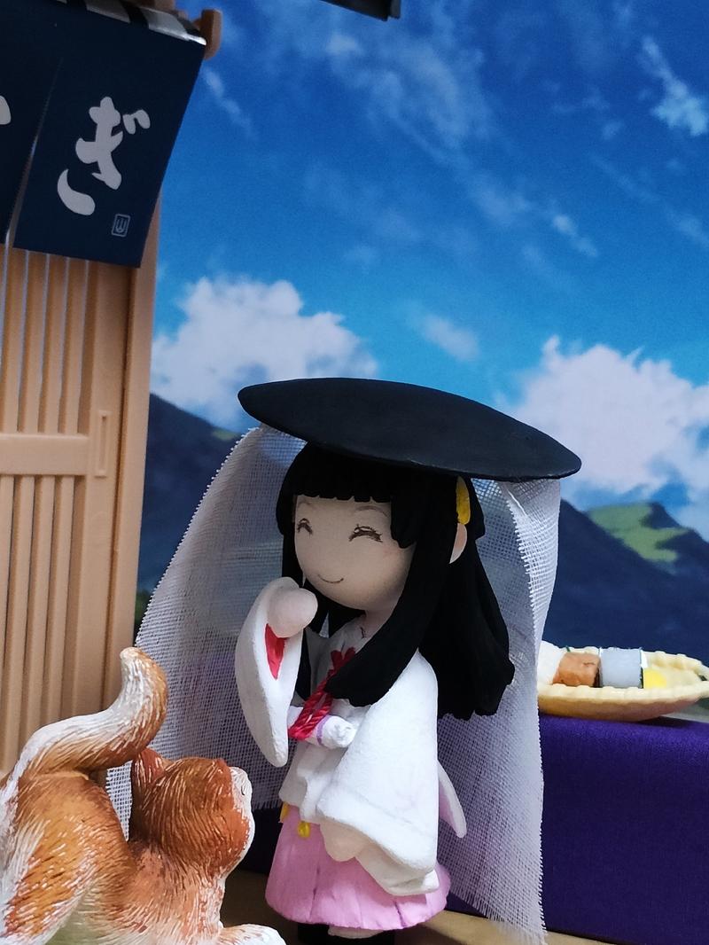 巫女服の造形、おすましした内股ポーズ、長い髪型と不安が沢山でしたが、ちゃんと自立してくれ、塗装もできて良かったです。やったー!