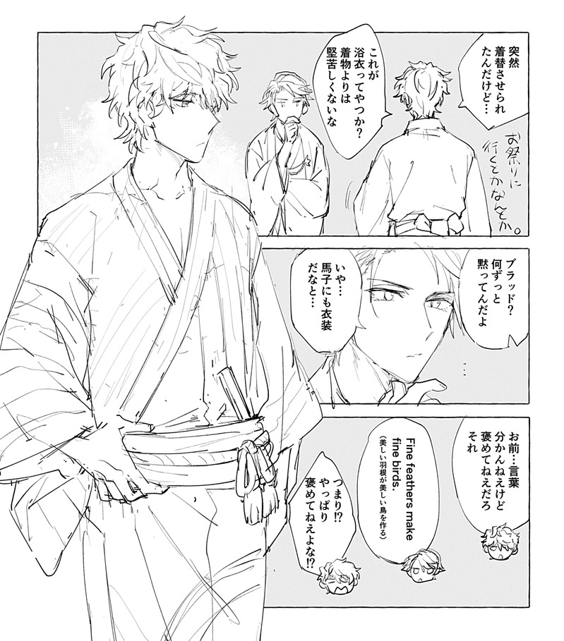 z_ecicicicicici☆quiet followDOODLE浴衣の話キースにも浴衣か着物をくれ!!!とか思いつつ描いた気がする。ゆったり系の服が好きなキースなら浴衣気に入るんちゃう??いやもっと着崩しそうな気もするけど…キスブラで日本旅行行け!!は一生言い続けたい。 show all(+3 images) Tap to full screen (size:1319x1500).Repost is prohibited Let's send reactions! freqpopularsnackothersPayment processing Replies from the creator Follow creator you care about!☆quiet follow z_eciciciciciciDOODLEネクストキスブラ1年をキスブラで締めくくる。そしてまたキスブラの1年が始まる。何年経ってもブラッドさんの隣にはキースがいて。キースの隣にはブラッドさんがいて。ふたりは相変わらず口喧嘩してるのである。 z_eciciciciciciDOODLEハピクリキスブラ仕事で遅いブラッドさんが遅れてパーティに参戦する時にはキースは既に出来上がってて、やっと来たブさんにウザ絡みをし始める…。某、密着ハグ大好き侍。ラブラブ。5年も描いてると引き出し無くなってくるんだよな…。常に新しいものを生み出すのは難しいゆえ…ハッピーエロばかりになるのは許して欲しい。 z_eciciciciciciDOODLEガストに傘を。3部で一番良かったエピソードがこれ。弟分たちが差し出す傘を断る事無く全部受け取っていたガストが、今日は何故か傘を受け取らずに去った…。アキラだっけ、ガストに絶対傘を届けるんだ!って言ってたの好きだったな。 2 z_eciciciciciciDOODLE和風ブラッドさんこの衣装、どういうの参考にして生まれたんだろか。不思議なデザイン。和洋折衷だから和風といえば確かに和風?傾いた出で立ちということで目元に紅を差したら似合ってたかもね z_eciciciciciciDOODLEジェット続けてこちらもスーツ衣装のやつ。カッコ良く塗れた気がする。 z_eciciciciciciDOODLEスーツビリーハッピーキャンディマジック!イーストのスーツ衣装ズルいよな~。普段ほんわか(?)セクターだから、全員バシッと決まってるとこ見せられるとめちゃくちゃ弱い。この手の外部メディアで着たものはゲーム内実装がないから惜しいね。 recommended works 我不是作者名DOODLE沉戬同人R18同人漫 【双星预览】🔑shuang 3 JiugeartDOODLE 期間限定DOODLEサクカ下書き先行公開 5/4のミラフェスに申し込みしました 2冊出したいな〜 bakyun_beanDOODLE普通にえろいやつエイチビデオで見た構図とかある 6 叮璎璎DONE18+ yes or no, ok 的话,移步评论区。 3072 森野クマ3TRAINING今日の進歩460鬼の構図はある程度見えたけどまだ足りない azuki13_mmYGMDOODLEサバイバー‼️⑨読んだフォロワーとの通話記録(捏造もあるかも) 道標▶︎DONE以前描いたモルガンVSオベロンのマスター取り合い漫画のオチがあったことを忘れてたので追加しました 3 suisoo___MAIKINGアスカガ/花を患い、花を喰む(序)※運命後の時間軸※IF設定(花吐き病)があります※今の所1万文字程度になる予定 2