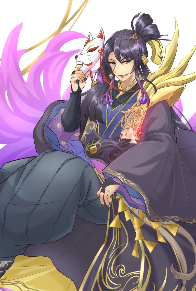 狐面を持った姿にすることは決めてたんだけどどうもポーズがしっくりこなくてひたすら描きなおし。顔もいいような何か足りないような…を繰り返してこちらもひたすら描きなおし