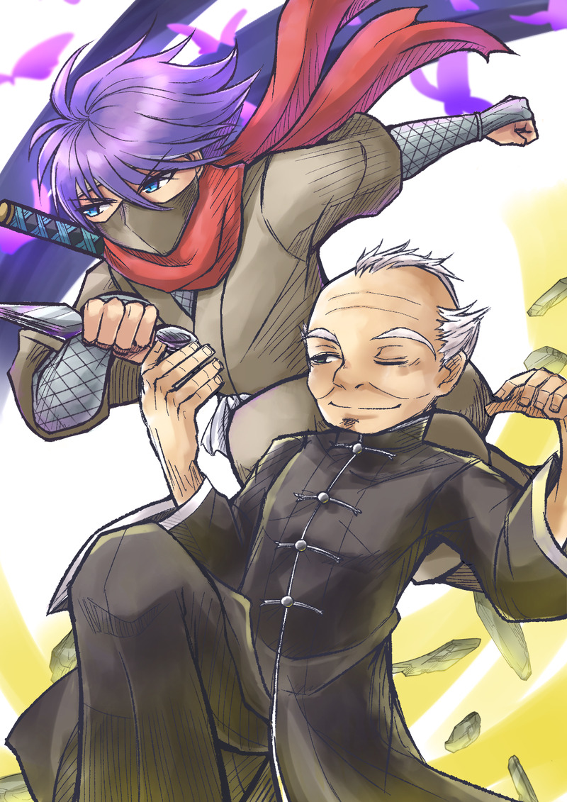 老師とおぼろ丸の修正版とおまけのモノクロっぽいパターン。