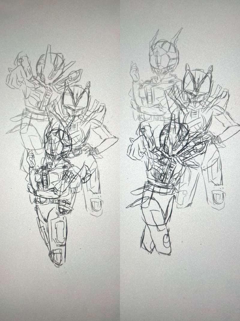 ずっと右の並びでラフ描きまくってたけどやっぱり左の並びのがいい気がしてきた!