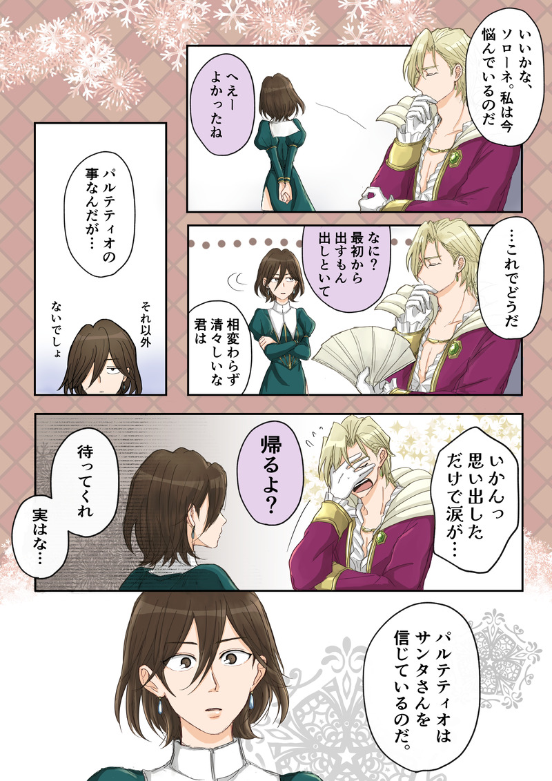 まさむね☆quiet followDONE※腐※アルパル「クリスマス前編」長めなのでカラーだけ先にあげます。パルは実際は商人の教育的にもパップに早々にネタバレされてそう、むしろ最初からもらえてなさそうな気もする…(やりすぎた)アルは親戚のおじさんみたいなかんじでみんなに懐かれててほしいしアルもアルロンドとして気兼ねなく接してくれる旅人たちに居心地の良さを感じていてほしい🎅 年越しクリスマスだけは避けたい🥲 #オクトラ2 octra2 #アルパル #アルロンド #パルテティオ… show all(+9 images) Tap to full screen (size:1403x1984).Repost is prohibited まさむねDONE※腐※アルパルジョブ別〜学者〜「第7の根源」「ロック構文」少女漫画⚠久々ですが変わらずアルパルです。。学者はパティチャの4人の学徒が好きでした、パティチャをフルボイスで聴きたい😭2つめは片思いです、ロックは出ないけどロックの名言を忘れません🏜️アスコットタイ?にしたかったけど謎服着てる…😭 7 まさむねDONE※腐※アルパル「服交換」服交換描いてて思った話✏️アルパルの商人ごっこにみんな付き合わされててほしいアルロンド貴族なのに言動が商人根性なのが好きすぎる、覇者の配役が本当に…生まれが違ったら本当に商人になってたと思う😇2025/5/14 3 まさむねTRAINING全身と色塗りの練習✏️全身むずすぎ(口癖)😭塗りは厚塗りの練習しようとしたけど難しすぎで分からなすぎて結局いつもの塗りになった…😇 まさむねDONE※腐※アルパル「東西対決」めちゃくちゃ大人げない富豪たちの話💰️4章のバチバチが大好きすぎるのでおふざけ大前提でロックは娘(孫?)はやらん的に、アルはパルの過去の話全部知っててバチバチしてほしい😇パルにはパパが3人いる🙆2025/4/8 6 まさむねMEMO「エイプリルフール」間に合わなかったので来年描きたい()🙆20250402 まさむねDONE※腐※アルパル「バレンタイン後編」大遅刻🐢前回の続きです、オリキャラ注意⚠ルナちゃんのストーk力…文字詰めすぎててグダ長いです、すみません😭アルは女と面倒そうなしがらみとか金目当て、パルは男にも女にもモテてそう💝2025/2/28 17 related works まさむねDONE※腐※アルパル「クリスマス前編」長めなのでカラーだけ先にあげます。パルは実際は商人の教育的にもパップに早々にネタバレされてそう、むしろ最初からもらえてなさそうな気もする…(やりすぎた)アルは親戚のおじさんみたいなかんじでみんなに懐かれててほしいしアルもアルロンドとして気兼ねなく接してくれる旅人たちに居心地の良さを感じていてほしい🎅 年越しクリスマスだけは避けたい🥲 10 まさむねDONE※腐/アルパル女子トーク下ネタ注意!低俗すぎて登場人物全員に申し訳ない;;キャラ違いすぎるので本当になんでも許せる方向けです🙇2024/8/26 5 Sillyneko_DOODLE Sillyneko_DONE まさむねDONE※腐※アルパル「ハロウィン①」まとめて一度に上げようと思ってたけどやっぱりカラーだけ先に上げて分けました🎃あと一週間で間に合え🐢🐌2024/10/23 2 hochotomekawaDOODLEオリとパルテティオ まさむねDONE※腐※アルパル「バレンタイン前編」バレンタイン遅刻です(毎回言ってる)長いし間に合わないので前後編に分けます🐢オリキャラ出るので苦手な方はご注意ください⚠名前がルナなんだけどいつの間にかレナになってた(がばがば)今回はパルが主人公です🙌ラーメン屋にしか見えない🍜後編もすごくグダ長いけど来週中にはあげたいです…🐢2025/2/14 9 まさむねDONE※腐※アルパル「クリスマス後編」中編ありそうだけどすっとばして描きたいところだけ描きました🗽ガチガチの少女漫画あるぱるなので注意してください🙇💦年越しギリギリ間に合って良かった🐢2024/12/31 13 まさむねDOODLE明けましておめでとうございます🎍今年もひたすらアルパル描きます、よろしくお願いします🐢2025/01/05 5 recommended works PN4wpn1hHHwTfsoDOODLEパルティティオ1章後推奨 PN4wpn1hHHwTfsoDOODLEオクトラ2 ベロニカ PN4wpn1hHHwTfsoDONE恋の荒療治(パルキャス?)ギャグです 5 Sillyneko_DOODLE mymm1214DONEブァーって描いたやつの完成形😊本格的にオクトラ2にハマる❤無駄にロゴに拘ってる😅パルテティオのᏢ(リーフマークが完全手描きの為)に愛が重くのし掛かってる(笑) keu_raDOODLE即落ち2コマってやつです まさむねDONE※腐/アルパル苦労人①、②細々してて見辛かったら一度タップすると解像度少し上がる…はず。。見にくくてすみません;しばらく四コマとか小ネタばかり描くと思います。アルパルの年齢差11歳なので親子カップルです(癖つよ性癖) 2 まさむねDONE※腐/アルパル海海ネタ🏖️アルロンドはモヤシでぱるぱるは小マッチョがいいなあ。裸むずい; 4 まさむねDONE※腐/アルパル女子トーク下ネタ注意!低俗すぎて登場人物全員に申し訳ない;;キャラ違いすぎるので本当になんでも許せる方向けです🙇2024/8/26 5