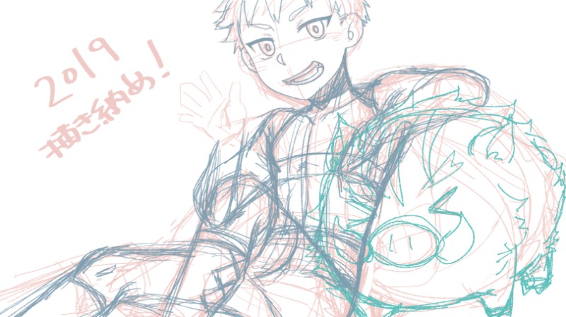 恐ろしい事に2019って書かなすぎてナチュラルに2018って書いてたんですよ…来年2020で子だな~ってのはわかって描いてたのに…