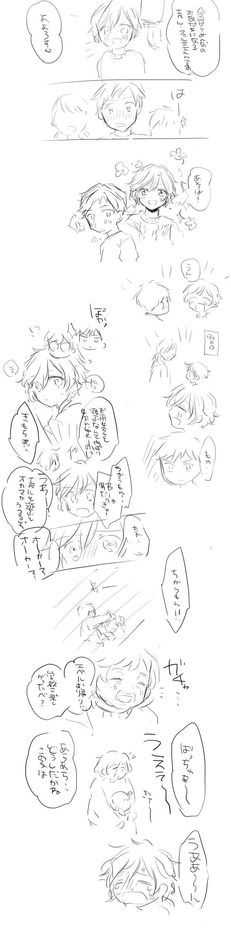 sio0506☆quiet followDOODLEエペのちっちゃいころらくがき。エレメンタリースクール通いだしたときに毎日泣いて帰ってきた、女みたいってばかにされてきたってこういうことでしょ…っていうモブエペ。モブは後々本人によってぼこぼこにされるし一生許しくもらえない。 Tap to full screen (size:1600x6529).Repost is prohibited Let's send reactions! freqpopularsnackothersPayment processing Replies from the creator Follow creator you care about!☆quiet follow sio0506DOODLE煽ったお前が悪い系のジャクエペ sio0506MOURNING没コマの墓場 パス:イベント開催日 4 sio0506DOODLE人を選ぶジャクエペ。大分不穏!!!!!!!!!!!!!!!!!!!!!!! 4 sio0506INFO優勝!!!!!来年はジャックくんもレースに出てほしいなっていうきもちです。新刊お買い上げありがとうございます! 2 sio0506DOODLEエペのちっちゃいころらくがき。エレメンタリースクール通いだしたときに毎日泣いて帰ってきた、女みたいってばかにされてきたってこういうことでしょ…っていうモブエペ。モブは後々本人によってぼこぼこにされるし一生許しくもらえない。 sio0506MOURNING新刊の没。前回と若干ネタ被りするのと登場人物増えるのとコマがぎちぎちしてたので…。でもあず~るはいつか描きたいね。 2 recommended works はなこDOODLEケルッカルトのエペルの服可愛い〜!※🐺🍎気味 gon_the_lesssDONEジャクエペワンライ参加させていただきます!お題「魔法みたいな〇〇」を受けて、「魔法みたいなテスト対策」というお話を書きました。試験勉強中の二人が、なんと待望のデュオ魔法に目覚めます。早く実装してほしい。(すみません、2時間以上かつ遅刻です) 3264 p_pngn_pDONE😵💫🐙💨🪣冷蔵庫の中身の反乱 ko_izumi_hidaDONE有頂天家族。下鴨矢ニ郎(カエル)。お試しで軽くウォーターマークを入れております Le_sub_tlDONEビザフリHO1!引っ込み思案だけど結構図太い神経をしてる、ただし大変鈍臭いBOYの予定 ひじぎん工房DOODLEモフフサのスケッチ記録 6 たらこDOODLEマシュセリのらくがき。清書する根気なくてらくがきに色のせてしまいました。多分背中に汗かくほど熱いと思うこれ。筋肉ってほんとに熱源。 𝙢𝙪𝙜𝙞𝙘𝙝𝙞𝙮𝙤DONE激遅描きはじめ、ぽぴまる🍊 Osyarotto08DONEDr.STONE あさぎりゲンのパンケーキアート