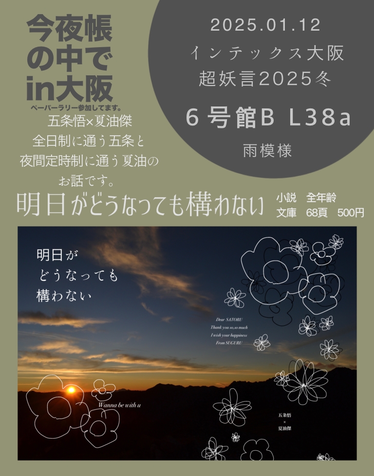 amemoyo572☆quiet followMENU今夜帳の中でin大阪にイベント参加します。お品書きです、よろしくお願いします。今朝入稿しました〜! show all(+4 images) Tap to full screen (size:768x979).Repost is prohibited Let's send reactions! freqpopularsnackothersPayment processing Replies from the creator Follow creator you care about!☆quiet follow amemoyo572DONEすぐちゃんの恋 小学生編初めての方は幼児期編からみていただいた方が楽しめるとは思いますがこちらのみでも読めます。まだ続きます。 6621 amemoyo572DONE明日がどうなっても構わないの後日談です。会場で無配していた物です。通販にはつけていないのでこちらに載せておきます。あと書き書き損ねたのでちょろっと後書と言うなの表紙のお話をお話の後に書いてます。 2373 amemoyo572MENU今夜帳の中でin大阪にイベント参加します。お品書きです、よろしくお願いします。今朝入稿しました〜! 5 amemoyo572INFO2025年1月12日インテックス大阪 今夜帳の中で参加します。こちらはサンプルページとなっております。 7568 amemoyo572DONE幼稚園から始まる2人の話夏が女の子です。幼稚園編まで完成。幼稚園児ですが悟の知能が高めです。幼稚園児なので正確か違います。 8129 amemoyo572PROGRESS描き途中ばかり572当主と使用人兼護衛 3420 recommended works Chiya__gsgsDOODLE銀高🔞パス:18↑?(yes/no)えっちの擬音ってえっちに書くの難しいんだな…と思うなどした! 2 *氷鳥*DONE預言者キスシーン。 lto269DONEGoNaGe Au Part 1 -TBCWarning: Student x Teacher relationship, 3PPass: Did you read the warning? (yes/no) 23 senkaDOODLE2023あたりのやつまとめいろいろはいってる 19 るるる@腐DOODLE同行ヒーローはゼオン ウォーゼル@黒葛原DOODLEL峰次五エロ ショコラDONE劣情増し増し逆バニーΣさん沼族ならこういう恰好しても合法ですよね!!!!!※もしかしたらR15かもしれない 2 r_iu3CAN’T MAKE描き初め損ねたけど練習にはなった。蛇顔ちゃん🐍 牛ハラミDONEマシュありでした 2