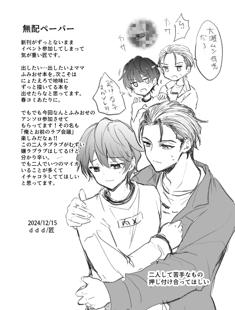 mnyantaku44☆quiet followDOODLEグロリアス3で配布した無配ペーパーでした誤字脱字ありますな… #ふみおせ fumiohse Tap to full screen (size:5528x7269).Repost is prohibited Let's send reactions! freqpopularsnackothersPayment processing Replies from the creator Follow creator you care about!☆quiet follow mnyantaku44DOODLEグロリアス3で配布した無配ペーパーでした誤字脱字ありますな… related works sun_nashiDOODLE🧡🩵 commission しちゃんDONE⭐️ペーパーのおまけ⭐️全体画像(ハートの背景付き)+それぞれバラの画像を置いておきます⭐︎✨ 5 kyamidayDOODLEだいしゅきホールドをオーダーするふみおせの有言実行絵です しちゃんDOODLEふみおせの雰囲気エロ漫画2pです。2p目はアナログ写メです、ごめんなさい!ふみ←おせ の感情を考えてました。 2 Fjskro1439DONEふみおせ♀RBBパロRBB🧡の膝の上に座らされた🩵♀が🩶の前でバレないようにえっちなことをされちゃう話。設定詰めてないなんとなくの雰囲気マフィアっぽいパロなので、その辺りはご容赦を💦(18↑?yes/no) 4721 mnyantaku44DOODLEグロリアス3で配布した無配ペーパーでした誤字脱字ありますな… Fjskro1439PAST🩵(♀)受けネタツイまとめ。ふみおせ、天おせ、いおおせ、りかおせ等。CP混在、女体化、エロなど一切配慮無しなので地雷ある方は注意。というかほぼ🩵♀ネタです。※随時更新(18↑?yes/no) 49870 Fjskro1439DONEふみおせ♀ハウスに誰もいないと思ってオナニーしてたら◯◯◯にバレて◯◯◯◯されちゃう🩵♀の話。前半部分使い回しで、こちらは🧡🩵♀乳首責めバージョンです。※濁点♡喘ぎ有(18↑?yes/no) 5185 riku39_2DONE前に書いた『大瀬専属舐め犬本橋依央利』の続き的なやつ。前の読まなくてもタイトルが全てなんで理解はできるはず。passは18↑(yes/no) 5813 recommended works kyamidayDOODLEだいしゅきホールドをオーダーするふみおせの有言実行絵です Fjskro1439DONEふみおせ依央利視点。普段淡々と接してくる🩵がいつもと違う表情をしてるのが楽しい🧡の話。💚「さっさと理解くんに付き合ってること言えばいいのに」🩵「相手がふみやさんじゃなければ言えたんだけど…」 1238 Fjskro1439DOODLEふみおせ♀⚠️女体化&妊娠ネタ⚠️前に出した自分に無頓着過ぎて気付かない🩵♀と産んで欲しいから黙ってる🧡の妊娠ネタに文を書き加えた結果、ダーク&🧡がヤバい奴になってしまった。 1363 Fjskro1439DOODLEふみおせ♀⚠️女体化&妊娠ネタ⚠️前の続きで情緒不安定な🩵♀を🧡はマタニティブルーだと思ってよしよししてるけどストレスの原因は🧡だよ的な話。🩵♀からしたら自分は非はあるから仕方ないけど🧡のヤバ行動が他の住人に向いてほしくないので地雷踏まないよう必死なやつ。 1667 5522_nakazimaDOODLE一線を越える🩵🧡🩵ぬるいですが🔞です。Q.18↑?A.yes/no 2 かみおMOURNING① 1537 鬼忍者可愛いDOODLE⚠腐向け R15 少年⚠クリスマスも忙しく働きどおしで0時過ぎて帰ったらサンタ君がお布団温めてまっててくれました💛的な落書き 2024年も推しがかわいいー! ひざうち太郎DOODLEリュパンXmasすけべ漫画3ページ※攻めフェラ有というかメインがそれパスワード⇒パンドロの身長(数字3桁/Pandreo stature (number3digits 3 kofigyugi2ndDONE美恋(みこ)ちゃんが巫女のコスプレしてみた。 10