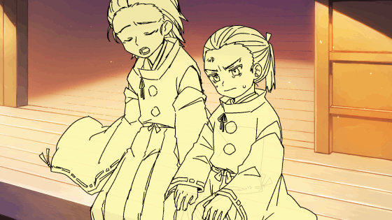 武芸の練習で何かうまくいかなくて、おでこすりむいて、自分の不甲斐なさに涙を抑えられない弟と、ふわふわと軽い感じで慰めにきた兄です。