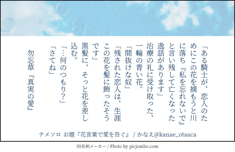 かなえ☆quiet followDONEテメソロ140字SS詰め合わせ140字SS 7本+最後のやつは長めに書き足した版もお題はhttps://shindanmaker.com/587150より。 #テメソロ show all(+7 images) Tap to full screen (size:910x590).Repost is prohibited Let's send reactions! freqpopularsnackothersPayment processing Replies from the creator Follow creator you care about!☆quiet follow かなえDOODLEn番煎じ失礼します比治沖で隆ツの置き土産 かなえDOODLE比治沖SUMMER沖野くんは日焼けすると赤くなるタイプで比治山くんは日焼けすると黒くなるタイプ かなえDOODLE比治沖コマ枠の入れ方と台詞の入れ方を覚えた! かなえDOODLE十三機兵公式保存記録のアレを見た感想ネタバレなのでワンクッションド直球過ぎて耐えられなかった比治沖幸せであれ かなえDOODLE比治山くんは「沖野」って叫んでるときが一番輝いてる件 かなえDOODLE沖野くんに「変態」って言わせてたら土曜日終わった related works husigiruuDOODLEお手てつないでいちゃいちゃ致してるテメソロ(ガッツリです) renDOODLEテメノスに「そろそろ付き合いませんか?」と言われたのを、すっかり忘れていたソローネの話。珍しく物理的に押せ押せのテメ。翌朝、ソローネの目のクマを見てテメノスは揶揄いそうだけど、「誰のせいでこうなったと思ってんの……」ってソロに言われて、内心すごく嬉しそうにするテメはいると思う。寝不足になる程、ソローネの脳内に自分がいたんだ、って思って。 8 renDOODLEテメソロ落書き。自分で脱ぎたいソローネと、阻止するテメノスの話。いかがわしいけど、致していない。致していないけど、致す直前の描写なのでR15くらい?致してないけど、いかがわしい雰囲気大好き人間~~!!! 6 husigiruuDOODLEテメソロいちゃいちゃ。声抑えがちなソローネ君の声がききたいテメノスなニュアンスでいかがわしい感じのらくがき。 renPROGRESSこっちに上げるの忘れてた。テメソロ無配の一部です。なんかまた仄暗いテメノスになりそう。 2 renPROGRESS7月発行のテメソロ新刊の進捗。また一緒に寝てる。付き合ってる設定なので、普通と言えば普通なのですが。テメの隣でぐっすり寝ちゃうソロ、好きなんだ……。 4 renPROGRESS新刊「涙雨の果てで君を待つ」の進捗。若干いかがわしい部分。本当に若干。いかがわしいけど、全年齢。校正終わらなすぎて、脳みそ爆発しそう…… 3 かなえDONEテメソロ140字SS詰め合わせ140字SS 7本+最後のやつは長めに書き足した版もお題はhttps://shindanmaker.com/587150より。 8 renMOURNING新刊の没シーン。途中まで書いてみたものの、話の流れ悪くない?中だるみしてるんじゃ??と思って、ばっさりカットしたシーンです。キャスティの睡眠薬に体が慣れて眠れなくなったソローネの側に、ただ何も言わずにいるテメノスの話。ソローネが過去をずるずる引きずって、悶々してる。きっとこの後ソローネは、テメの隣で寝落ちしてると思う。力尽きて、途中でいきなり終わってます、すみません……。 7