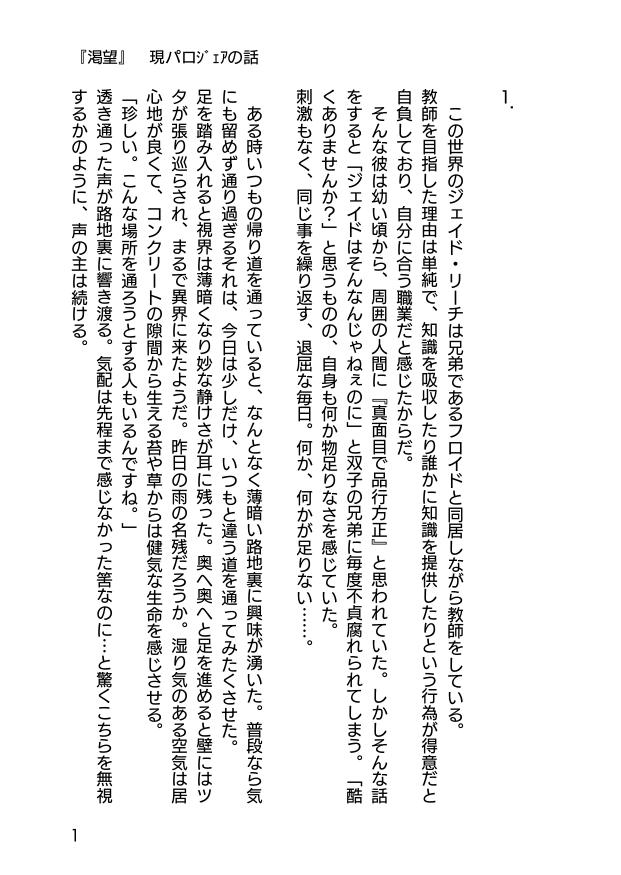 むらさん☆quiet followDONE現パロジェイアズ🐬🐙SS(R15)『渇望』⚠ジェ目線🐬⚠何でも大丈夫な方向け⚠エッッッッなの書けなくてR15になりましたすいません拙い文章ですが、ご了承下さい。 #ジェイアズ j.a.s. show all(+22 images) Tap to full screen (size:621x875).Repost is prohibited Let's send reactions! freqpopularsnackothersPayment processing Replies from the creator Follow creator you care about!☆quiet follow むらさんDOODLE天使の日(遅刻) ブルスカに載せていたもの「貴方は凄い人」🐬🐙 むらさんDOODLEジェイアズ🐬🐙落描き素直になれない 2 むらさんDOODLEボカ◻︎曲パロ絵でジェイアズ🐬🐙 『SLIP』より 2 むらさんDOODLE【イチャラブジェイアズ落描き(描き貯め) 一応定まらないシリーズです31〜40】⚠︎一部にょた要素有り描ける時に描いた落描きです。今回は特例ということで…。前回までと違いちゃんと全部落描きです。楽しいね〜✨もしよろしければ、(表紙を除いて)お気に入りのrkgkの番号を教えて下さい! 11 むらさんDOODLEちょっとえっちぃなジェイアズ🐬🐙⚠︎雑落描き むらさんDOODLEジェイアズ🐬🐙とクレープ※中身ない 3 related works おぎんさんDONEジェイアズ🔞NSFWジェイアズSM企画第一回「緊縛」鱈さきさ〜んできました〜! 2 semimaru7PASTジェイアズログいろいろまとめてみました!攻めの女装とR18があるのでお気をつけください!!!2023.9 エロい過去絵などをちょっと増やしました。 62 asciiouDONE僕タコ2開催おめでとうございます~!!遊びに来ていただきありがとうございました🥰展示品を再放送させていただいております! 3 ema_11azDONE【R18ジェイアズ】カラカラの🐙と止まらない🐬の漫画。本番描写はジェイアズのみですがイドアズ前提。フロもいます。 3 みずきゆうこDOODLEジェイアズちゅー。アズはお姫様だと思います💕 semimaru7DOODLE四十八手ジェイアズ出船後ろ取りR-18なので18歳未満の方の閲覧はご遠慮下さい。ヨダレぽたぽた出ちゃうジェとお目目がハートになってるアズが描きたかった、などど供述しており…… 2 semimaru7DOODLE10000000000…回は見たいジェイアズの初夜のうちのほんの一つ?どっちもいっぱいいっぱいが好きです。元ツイネタ↓初めてのセ……でジェが途中から何も喋らなくなって不安になったアズが何か喋ってってお願いするけどほんとに余裕がなくて喋れなかったジェ、という初夜です💕R18ですので18歳未満の方はくれぐれも閲覧をご遠慮下さい。 2 semimaru7DONE第29回 「バレンタイン」#ジェイアズワンウィークドロライ初椛さんの小説とコラボで描きました。とても楽しく描けました💕✨ハッピーバレンタイン!!ゆるいですが、R-18なので18歳以下(高校生含む)の方は閲覧をご遠慮下さい。 3 semimaru7DOODLEアズに待ってって言わせたいだけのアレ。tKBはパフィ好き❤️R18なので18歳未満の方はご遠慮ください。ちゃんとジェイアズになりました✨💕 recommended works himemiko1018DONE今年初めてのお話しです。 3 himemiko1018DONEジェイアズでバレンタインのお話し。 5 k_kurayaDONE豆アズが天井でも来ないので、お空でジェイドとお豆食べてるジェイアズ描きました!フロイドも豆参戦してくれたので合流してもらいました! 2 ちゅうるDONEイドアズショタ子悪魔アズールと背徳の双子神父あらすじリーチ兄弟が神父をつとめる教会に、ある日子悪魔アズールが現れる。神聖であるはずの教会に何故悪魔が?などと思うものの、小さな体に美しい容姿。あろうことか兄弟二人は子悪魔に一目惚れしてしまう。二人の神父は子悪魔アズールに契約を持ちかける。たった一夜で構わない、アズールを抱きたい。そのかわりアズールの永遠の下僕となる。しかし…… 2 @shin_sugarmaroDONE恋心忘れる魔法薬を飲んで七年分の記憶を失うジェイドの話。今のところジェイ→アズ 52 松子🐚DOODLEジェイアズのキス @shin_sugarmaroPROGRESS恋心を忘れる魔法薬を飲んで7年分の記憶を失うジェイドの話8※アズ母、祖母捏造 44 @shin_sugarmaroDONE恋心を忘れる魔法薬を飲んで7年分の記憶を失うジェイドの話 最終話 ハーツラビュルでの一悶着を終えてオクタヴィネルに戻り、アズールと別れてからジェイドはひとり悶々と考え続けていた。 結局、トレイと自分が一緒にいるのが嫌だとはどういう意味だったのか。 アズールが何も言わないからつい詰問するような口調になってしまったけれど、それにしてもあのアズールがあんな事を口走るなんて。 ─だってお前がトレイさんと一緒にいるなんて言うから─ その時の事を思い出してジェイドはまたむぅっと眉を顰めた。 「だって」なんてそんな、まるで子供がだだをこねるような口調が既にいつものアズールらしくない。 そしてそれがトレイと一緒にいた事が原因だと言うのだから、ジェイドはますます意味がわからなかった。 28373 kreidxprizDONEI'm sorry, I'm not used to draw old man in a suspicious wayhere's your thirst reward for #EVILRICKSWEEP