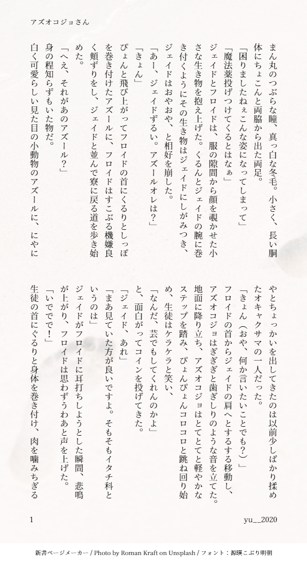 yu__2020☆quiet followDOODLE流しけだま。アズがオコジョの姿。基本に忠実な元気なオコジョのアズとキャッキャするイドのイドアズ風味。 show all(+1 images) Tap to full screen (size:618x1132).Repost is prohibited Let's send reactions! freqpopularsnackothersPayment processing Replies from the creator Follow creator you care about!☆quiet follow yu__2020DOODLEハッピーけだまWeekend訳ありけだまのイドアズ。儚き鳥(?)ともふもふ狼のほのぼのかもしれない何かの始まり。続きはない。 1978 yu__2020DOODLEヤンパリ風のゲーム生物のイドとゲームを遊ぶショタアズのイドアズ。ゲームプレイ編2 ピクニックで他の人と遊ぶのを嫌がるヤンパリ達(かわいいの姿)をイメージ。 2320 yu__2020DOODLE朝活流しキュイ。今日はドアスイ。カフェメニュー試食をする飼育員さん達。 2 yu__2020DOODLE流しけだま。アズがオコジョの姿。基本に忠実な元気なオコジョのアズとキャッキャするイドのイドアズ風味。 2 yu__2020MOURNINGニューイヤーイベントおめでとうって事で去年書いたお正月のお話。紙に出すかまとめるかするのを忘れてそのままにしていたからもう一回晒す。東洋のとある国が開国して少しくらいにやってきた外国の異人達のお話。イドアズ 5172 yu__2020DOODLEコンス*ンティン風イドアズ。特に深く考えていないしカトリック分からないからふわっとしてる。悪魔のジェと天使のフロと色々あって契約して現世至上主義、天も冥界しらねー!と悪魔をバットとかでハレルヤファ*キンとか言って祓う祓い師のお話。 8007