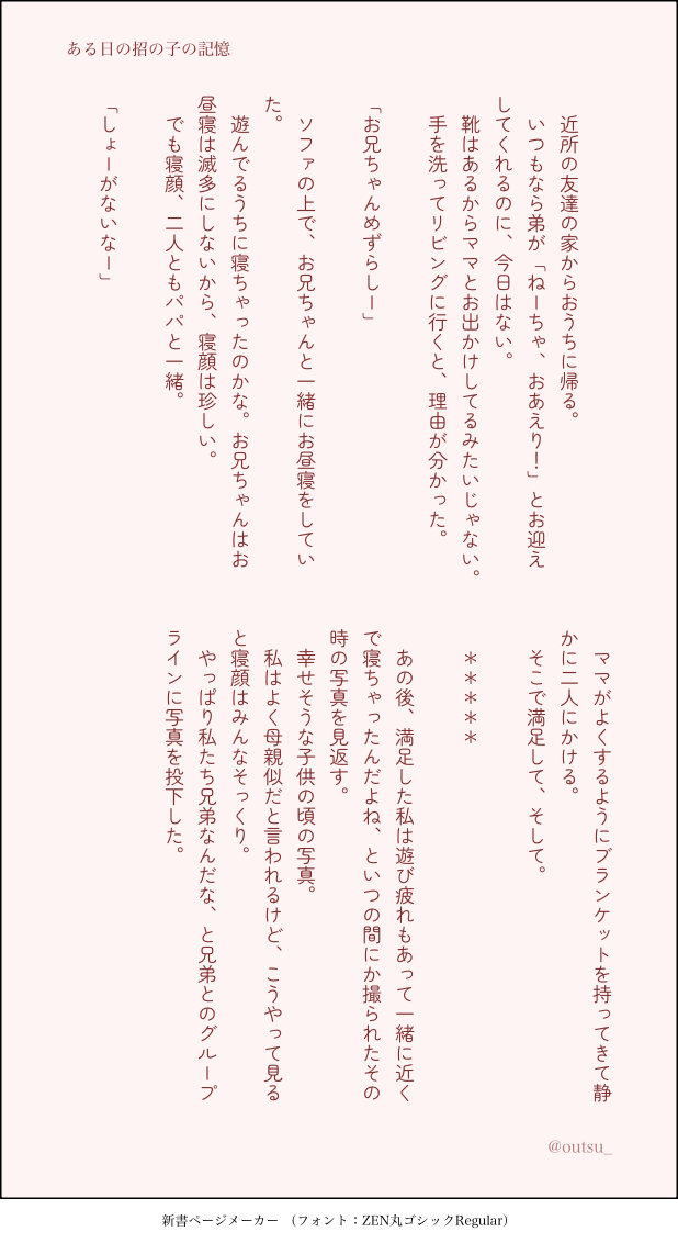 outsu_☆quiet followTRAININGある日の招の子の記憶 Tap to full screen (size:618x1132).Repost is prohibited Let's send reactions! freqpopularsnackothersPayment processing Replies from the creator Follow creator you care about!☆quiet follow outsu_PAST昼明(R18)🔑→18↑ y/nしばらくしたらフォロワー限自己肯定感の高いメンヘラ 1659 outsu_PAST星昼(R18)🔑→18↑ y/nしばらくしたらフォロワー限 1776 outsu_MOURNINGsksに異世界転生したモブのお話n番煎じ小学生の頃の話(捏造)ぷらいべったーから移行これ以上は続かないので供養 1476 outsu_DONE日×昼セフ𠄌以上恋人未満本番はないです数日後にフォロワ限🔑→18↑ y/n 1917 outsu_DONE居酒屋エンカウント(牛縁) 1958 outsu_TRAININGある日の招の子の記憶