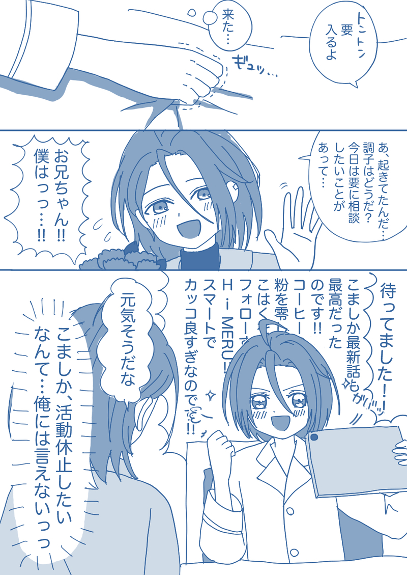 ramirunrun☆quiet followDONEウタカタイベントより♪要くんがさらに元気そうだったら~というギャグお兄ちゃんは勝手にHiMERUを初めてしまった手前、要くんにちょっと気を使うのかな~とか考えました #あんスタ Ensemble Stars #あんさんぶるスターズ!! ansamburuStars! #あんスタ腐 anstaRot #HiMERU #十条要 tenEssentials #ひめ要 smallKeystone Tap to full screen (size:1075x1518).Repost is prohibited Let's send reactions! freqpopularsnackothersPayment processing Replies from the creator Follow creator you care about!☆quiet follow ramirunrunDONEIt's (k)not lov?記念に、ひめマヨ?マヨひめ?描きました😊♡話題になった高音も無理やり入れたぜ😃 ramirunrunDONE王位に興味をなくした奔放な王子様&お城の白騎士様の穏やかなひととき……🌹✨️燐ひめ♪ ramirunrunDONE巽ひめワンドロ用♪私的には2人ともイケメンに描けたと思っている! ramirunrunDONEめちゃくちゃ天城さんにおちょくられている薫くんを描きました♪ビリヤード場にいる感じを出したかった推しと推しで最高だった…ロイヤルフラッシュありがとおおお ramirunrunDONE燐ひめ♪付き合って間もない2人?照れちゃってなかなかチュウしたいと言えない2人~?みたいな浴衣と花火でお話を作りたいなと思って考えました😃 2 ramirunrunDONEメガスフィアの大浴場は、修学旅行みたいにユニットごとに入る時間が決まってたりするのかな?とか考えながら描きました♪巽ひめワンドロ用♪ related works couteau。DOODLEHiMERU双人论。不可忽视的十条要提及。重要角色死亡注意。summary:HiMERU压在他身上,风拂过风早巽的唇边——那是HiMERU在亲吻他,他的吻,他的思念是一缕微风,悄然飘进风早巽的唇瓣,风早巽的眼睛,风早巽的骨髓里。即便是灵魂,他也很想捧起那瘦弱但是精致如洋娃娃一样的病态脸庞,轻轻的啄吻过他的泪痣。 4393 チン呼吸DOODLE脱肛〜〜!!!安楽椅子探偵HiMERU[アナルローズ編] t242mu4DONE誕生日おめでとう でお前誰? A_I_U_FADONE 5 tanuko_PDONE『HiMERU』がいつか望む光景 bamuseDOODLEXXveilのHiMERUの衣装はいつにも増して足が長く見えますね -Sora-MOURNING« ひめこは »Happy Valentine🍫💓キスもチョコも美味しい。 2 tanuko_PDONEメルひめ後悔先に立たず 6 チン呼吸DOODLEスカウトイラストエッチHiMERUくんを受けて正気を取り戻すためにAIノベリスト様に頼って9割書いていただきました。HiMERUくんが犬になる所で(良くも悪くも)正気に戻れます。 3771 recommended works kro_0DOODLE羽風薫 れんしゅう なみちPAST 朝比奈DONEあんスタキャラ描きました!しののんの色んな表情描くの楽しい!! 2 mzknDOODLE悪魔りつ ゆうきMAIKINGヴィジュアル系のお兄さんにしちゃいそうなサクマレ nu.DONE # リプ来たキャラを満面の笑顔にする凛月くん🧸 2 はむちゃんDONEマヨイくん完成❗️♣︎💜 湯屋。DOODLEお久しぶりです!あんスタの最推しのしののんです(*´ω`*)銀.魂や文.スト以外にも描いてみようかなと しゅあさんPASTついったーにあげてたやつの加工ちがうバージョンとか 6