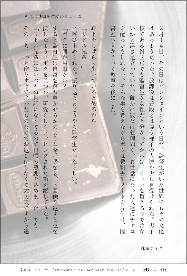ichigotaruto_24☆quiet followPAST監督生がバレンタインの日に寮長にプレゼントを贈る話 #リド監 lido #ツイステプラス twistaplus #twstプラス twstPlus show all(+3 images) Tap to full screen (size:630x928).Repost is prohibited Let's send reactions! freqpopularsnackothersPayment processing Replies from the creator Follow creator you care about!☆quiet follow ichigotaruto_24DONEいつまでもキスになれない🌸と余裕が無い🌹 2 ichigotaruto_24DONE ichigotaruto_24DONE ichigotaruto_24DOODLE ichigotaruto_24PAST🌹が4年生になって🌸となかなか会う事ができない時に送った手紙 ichigotaruto_24DONEオンボロ寮の朝(差分あり) 2 related works mi_chan0823roseDONE【誕生日は少しだけ夜ふかしを2025 展示作品】夫婦なリド監グリムと2人と1匹で幸せな日常を過ごしてほしいなあと思います(*^^*) 3 mi_chan0823roseDOODLE【新刊ShortVer.】連奏ディスティニー🎵(3/9)2025年8月23日〜24日開催の「誕生日は少しだけ夜ふかしを2」に展示した新刊のサンプルです(頒布日は未定)以下の点にご注意ください⚠️・キャラ設定・ツイステッドワンダーランドの世界観等に捏造多数あり・監督生顔あり・監督生両親登場シーンあり・今後の展開で捏造NRC教師登場予定以上のことが許せる方のみ閲覧・購入をおすすめし 3 tsugumifuyuDONEせせりさん(@ssr_77694)の性癖あみだ企画に参加させていただきました。お題「拘束」リiドiル×女監督生(名前はユウに設定しています)リiドiル君視点での、お話です。※性行為をしていない・また性的描写がないことからR18タグは設定していませんが、自慰行為を連想させる描写はあります。が、直接描写は一切ありません。※なんでも許せる方向け。※読んでからの苦情は一切聞きません。 5610 y_takane_0504DOODLE女監督生(顔無)女性責めっぽいめに合う🌹くんです 2 mi_chan0823roseDOODLE【新刊ShortVer.】連奏ディスティニー🎵(6/9)2025年8月23日〜24日開催の「誕生日は少しだけ夜ふかしを2」に展示した新刊のサンプルです(頒布日は未定)以下の点にご注意ください⚠️・キャラ設定・ツイステッドワンダーランドの世界観等に捏造多数あり・監督生顔あり・監督生両親登場シーンあり・今後の展開で捏造NRC教師登場予定以上のことが許せる方のみ閲覧・購入をおすすめし 3 mi_chan0823roseDOODLE【新刊ShortVer.】連奏ディスティニー🎵(9/9)2025年8月23日〜24日開催の「誕生日は少しだけ夜ふかしを2」に展示した新刊のサンプルです(頒布日は未定)以下の点にご注意ください⚠️・キャラ設定・ツイステッドワンダーランドの世界観等に捏造多数あり・監督生顔あり・監督生両親登場シーンあり・今後の展開で捏造NRC教師登場予定以上のことが許せる方のみ閲覧・購入をおすすめし 3 283匹目のイヌDONE(付き合ってる)照れすぎてキレてほしいリド監 きのきのこMEMO首筋にキスで執着。その夢を見ることが意味するのは……(微えち) 4 kurulmyumeSPOILER🌹→🌸←初期🌹リド監#twst_NL※設定資料集ネタバレあり※初期リくんの絵あり※監督生♀顔あり※幻覚強 recommended works Illust_nozokiPROGRESSお試し 2 くどおDOODLE監が折れた時どこからともなくラギーブッチが出てきて「ユウくんは頑張ってるッスよ」て自分と同じ境遇(非常識でこの身一つで学園に来た)の後輩を慰めてくれる はなさきMAIKING合宿中のカリ監ラフ 2 まめこあけびDONE上げるの忘れてたのでついでにぽいぽいしとくスタ○パロ?バイト?な、ラギブチ夢絵「お姉さんがだーいすきなクリームを、だーいすきなオレが増し増しにしてあげたッスよ♥♥♥」くらい調子こきそう、好き!!!!!!!!!!!!!! chihinataDOODLEいつもの3人と1匹。 twst64546382DONE「犬と猫どっちも飼ってると毎日物騒」①イド監♀(顔ある。しゃべる)犬と猫になったリーチ兄弟が監督生ちゃんに飼われる話 #twstプラス #twst夢 七海紗綾DONE※ラギ監、NRC時代※ラギと合同授業 3574 Deu_in_the_AirDOODLE色色一下 おむぎDONEリド監♀/無配漫画大阪インテにて無配したものです