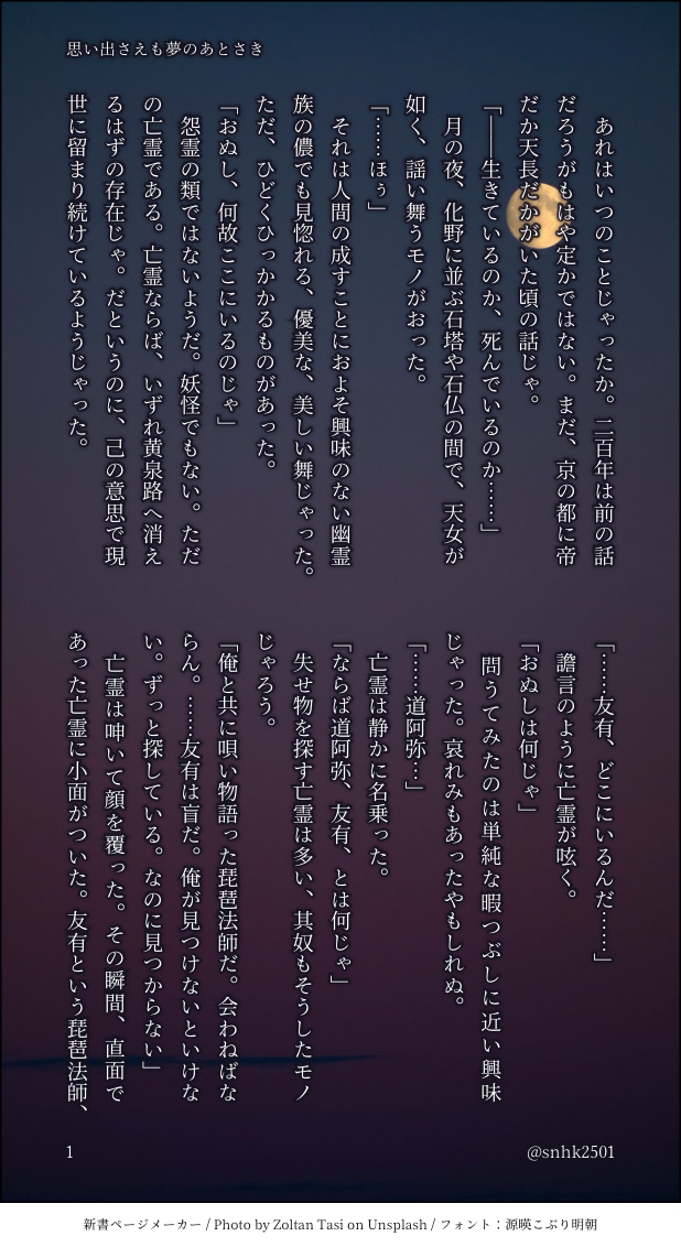 風葬の地化野で舞う道阿弥(犬王)の目玉親父による回想。