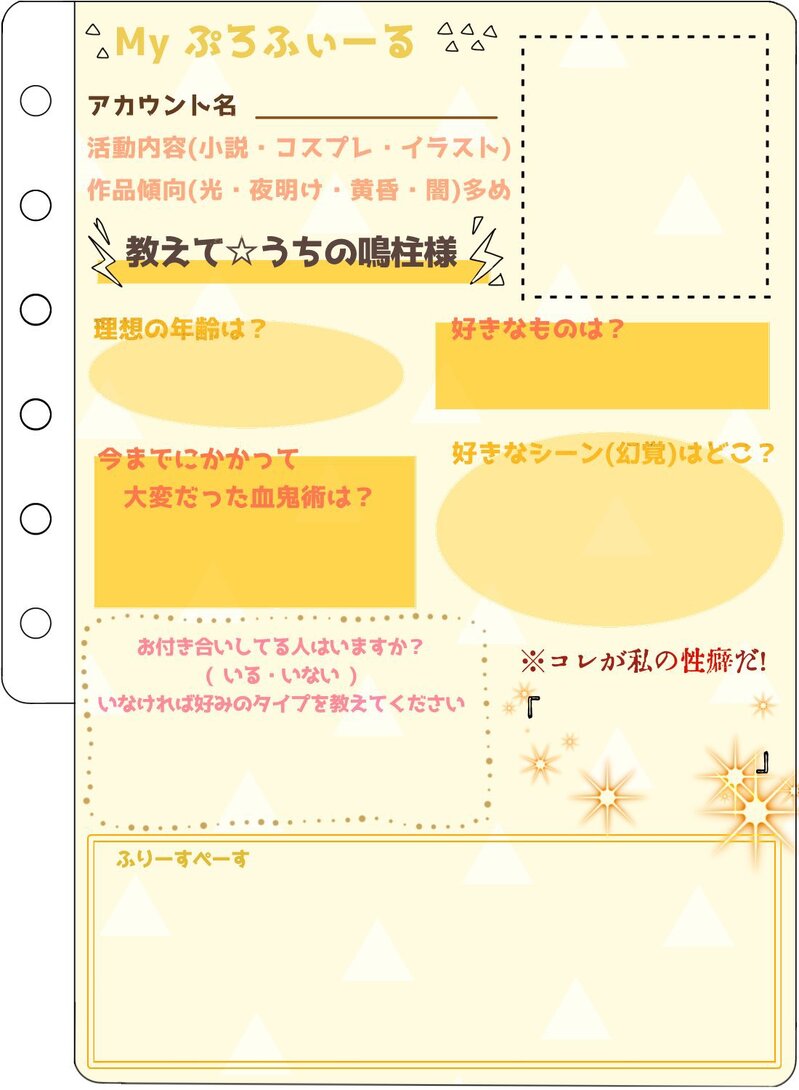また、このプロフ帳にぴったりな「#うちの鳴i柱i様は」というタグがあります。よければこちらのタグも併せてお使いください😊