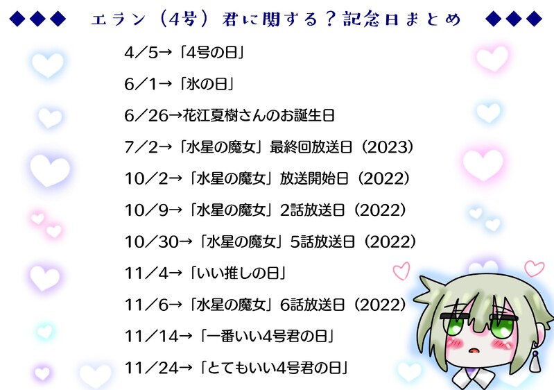 エラン4号君を愛でたり祝福したりできる記念日