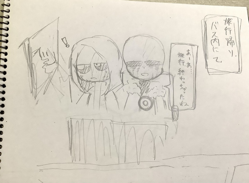 お題箱より、『旅行に行くとマーダーが当たり前のように「次も一緒に行こう」と言ってくれるから、近い将来も共にいてくれることが嬉しくて、思わずマーダーを抱きしめてしまったキラー』のキラマダ漫画です。