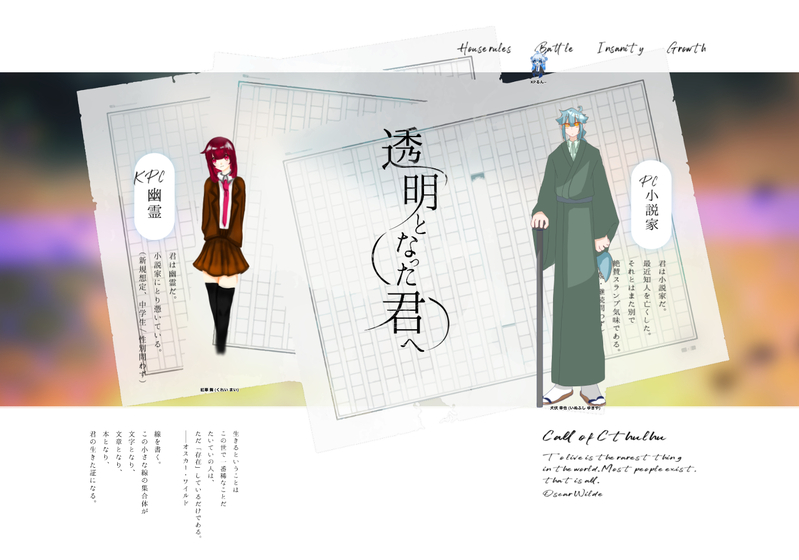 るんさん🦾🌚☆quiet followINFOCoC「透明となった君へ」KP:るん~KPC/PL(敬称略)紅華 舞 / るん~PC/PL(敬称略)犬伏 幸也 / グラス✒️END 生還にて閉幕!!📖回ってくれたPC、PL様に大大大感謝✨ビィービィー泣きながら回させて頂きました🫂最高の子達。楽しかった❕❕☺️✨️ Tap to full screen (size:1481x1038).Repost is prohibited Let's send reactions! freqpopularsnackothersPayment processing Replies from the creator Follow creator you care about!☆quiet follow るんさん🦾🌚INFOCoC「魔法使いの水葬」KP:酢昆布 様KPC/PL(敬称略)Dym・Raphus / 酢昆布PC/PL(敬称略)Alice / るん~🫧ENDAにて閉幕!!🫧️回してくださったKP様に大大大感謝✨️最高に素敵なシナリオ回らせていただきました🥹🫶🏻世界に感謝KPに感謝師匠に感謝🫂︎🫧 るんさん🦾🌚INFOCoC「VOID」KP:鳩のにぃちゃん🕊 様SKP:ユーリ 様 ︎︎ ︎︎:奇行-葬儀屋 様PC/PL(敬称略)HO1:谷下 我夢 / ヌグフングHO2:春雨 結城 / る〜ぷ。HO3:灰桜 直翔 / グラスHO4:白翔 / るん~🍮🎈END A 全生還にて閉幕!!🥃🐙一緒に回ってくださったPC、PL様、回してくださったKP、SKP様に大大大感謝✨️ るんさん🦾🌚INFO新クトゥルフ神話TRPG「冒涜都市Z~深碧の魔境~」KP:蒼玉さぴる 様PC/PL(敬称略)HO1:Cecilia・Alcott / 月詠悠依HO2:Ezekiel・Anderson / さかのみHO3:Lucas・Hartwell / るん~🔎全ロストにて閉幕!!🔎一緒に回ってくださったPC、PL様、回してくださったKP様に大大大感謝✨️ るんさん🦾🌚INFOCoC「記憶にない場所」KP:まめ 様PC/PL(敬称略)何森 景 / まりの本間 美筋 / みんと鉄嵜 鋼牙 / 魔禍龍綾辻 依央 / るん~🤝🏻全生還にて閉幕!!🤝🏻一緒に回ってくださったPC、PL様、回してくださったKP様に大大大感謝✨️ るんさん🦾🌚INFO新クトゥルフ神話TRPG「プルガトリウムの夜」KP:るん~PC/PL(敬称略)HO1:正義の代行者 旧屋 昨日 / 出HO2:傷多き協力者 來佐 明汰 / べとべと🚨END Cにて閉幕!!🚨回ってくれたPC、PL様に大大大感謝✨️ るんさん🦾🌚INFOCoC「毒吐」KP:るん~PC/PL(敬称略)初潮 葵 / 玉虫🌀END 1にて閉幕!!🌀回ってくれたPC、PL様に大大大感謝✨️文章力が本当に凄かったです🙌🏻感動しました...🥲ありがとうございました✨️