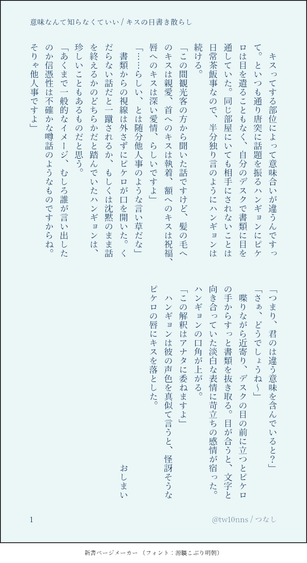 つなし☆quiet followDOODLE🐙🐸。キスの日にちなんだハンピケらくがき #ハンピケ Tap to full screen (size:618x1132).Repost is prohibited Let's send reactions! freqpopularsnackothersPayment processing Replies from the creator Follow creator you care about!☆quiet follow つなしDOODLE🐙🐸SS名刺サイズでスケベを書こうチャレンジ。ふわふわになってるピケさんはかわいいね。実際最中はもっともっと頭の中ぐちゃぐちゃだと思いますセルフお題は「ピストン」でした♡そんなにえっちじゃないけど、一応情事描写なので18歳以上ならyesで つなしDONE【朗報】突然の学パロ!CPがめちゃめちゃなのでなんでも許せる方向け!🐊→🐸が始まりそうな雰囲気で、🐙→🐊←🐙と🐙→🐸が土台にある。一番直接的なCP絡みがあるのは🐙🐸。細かい設定は決めてないので、IQ2のラブコメだと思って、フィーリングでお読みください。らくがきのつもりだった…(一応末尾に、この話における個人的CP思考を載せています。お好みで読んでください) 9 つなしDOODLE🐙🐸。風呂ガリありがと~~♨️♨️温泉街4コマの翌日のような。ハンピケで一緒に温泉に入って欲しかった 4 つなしDONE🐙🐸。真夜中にピケロのところにやって来るハンギョンの話。これから始まる感じのハンピケです。25.6.26にあらゆる情報の過剰摂取で気を失った後に書いたもの。Ep4もウォチパもありがとう…(25.7.25 ページ順間違えていたのを直しました) 4 つなしDONE🐙🐸。ノワブep4(🐙王国)公開前の、無いEp4の匂わせるハンピケの話。チャコ視点なのでCP要素は薄め。Pixivに上げているものと同じ話の画像版です。昨夜はふたりで何してたんでしょうね〜 7 つなしDOODLE🐸受け(概念🐙🐸)。ふせったで呟いた🐸さんへの劣情(画像1枚目)をどうしても見たくて自分で足掻いたらくがき何も出てはないけど、一応R18とさせてください。私の羞恥が勝っているので。18歳以上ならyesで 2 related works つなしMEMO🐙🐸妄想メモ。自分の知らん間にからだ開発されてるのってエッロいですよね……というハンピケ🐙🐸です(※少々倫理観がない、かも?)18歳以上ならyesで 1109 つなしDONE【朗報】突然の学パロ!CPがめちゃめちゃなのでなんでも許せる方向け!🐊→🐸が始まりそうな雰囲気で、🐙→🐊←🐙と🐙→🐸が土台にある。一番直接的なCP絡みがあるのは🐙🐸。細かい設定は決めてないので、IQ2のラブコメだと思って、フィーリングでお読みください。らくがきのつもりだった…(一応末尾に、この話における個人的CP思考を載せています。お好みで読んでください) 9 つなしDONE🐙🐸いつも言ってる感じのセフレのハンピケです。何も始まってないけど、情事の話は普通にしているのでOKな人はどうぞ♡ 3 つなしDONE🐙🐸。ノワブep4(🐙王国)公開前の、無いEp4の匂わせるハンピケの話。チャコ視点なのでCP要素は薄め。Pixivに上げているものと同じ話の画像版です。昨夜はふたりで何してたんでしょうね〜 7 つなしDOODLE🐙🐸。キスの日にちなんだハンピケらくがき ひな猫。DOODLEハンピケ🐙🐸(🐙は手だけ)な押し倒され🐸さんパスワードあなたは成人済みですか (yes/no) つなしDONE🐙🐸中編予告で🐙の画像が来てカッとなって書いた捏造ep3後のハンピケです。(※前編しか公開されてない時点で執筆しています)◆捏造ポイント◆◇けろぴ様がシーズに取り憑かれた的な理由でモニタリングしていた◇上記を解決するために、ピケがハンに助けを求めていて、ハンが合流した◇諸々無事に解決して、今度は皆でハンの王国に行こうね〜的な感じの前夜想定 4 つなしDOODLE🐙🐸。風呂ガリありがと~~♨️♨️温泉街4コマの翌日のような。ハンピケで一緒に温泉に入って欲しかった 4 ひな猫。DOODLEいたしてるハンピケ。パスワード/あなたは成人済み(yes/No)