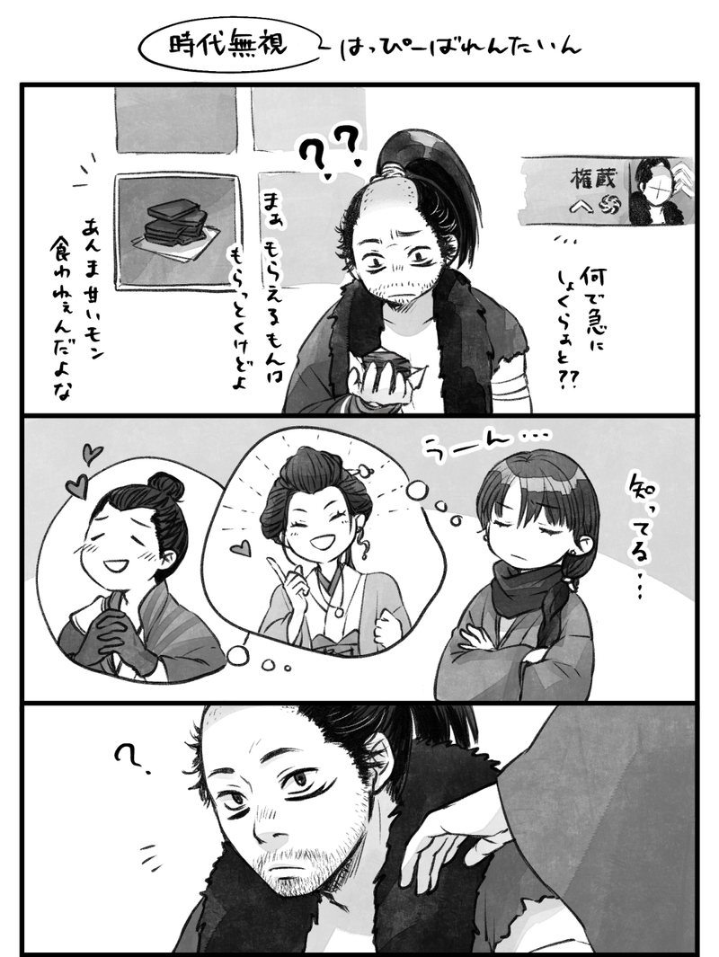 ryokura_e☆quiet followDONE時代無視バレンタイン権×主。not比翼。世話になってるからあげるぐらいの感覚なので、あとで勝さんにもあげます。そしてバレンタインどうこうは権蔵には何も話していない理不尽。年賀マンガでは主人公がしてやられたので、今回は権蔵にしてやられてもらいました。 show all(+1 images) Tap to full screen (size:971x1293).Repost is prohibited Let's send reactions! freqpopularsnackothersPayment processing Replies from the creator Follow creator you care about!☆quiet follow ryokura_eDOODLE権×主。比翼直後っぽいらくがき。権蔵は、最初のころはちょっとくっつくのでも照れててくれたら私がうれしい。 ryokura_eDONEウェブオンリー紫電一閃簡易版用 展示マンガでした。治安の悪い賭場の話。権+主。賭場での日常。モブが沢山出ますのでご注意。多分江戸初期。顔には出ませんが、ほんのちょこっと庇われたのが嬉しかったりしたので、夕飯はうなぎです。 6 ryokura_eDOODLE少女漫画(?)っぽく見せかけて物騒。息抜きに描いてたら、バレンタインと似たりよったりな内容に…。こういうのが好きだから仕方ない…🫠じわじわと大事にされてるのが身にしみていく感じを描きたい今日この頃。 ryokura_eDOODLE野宿。 ryokura_eDONEホワイトデーはなさそうなので、時代無視バレンタインマンガの後日譚。がっつり権×主です、ご注意!今回は引き分けました😌 6 ryokura_eDOODLE権主。ベタなんですが、こういう場面のマンガ描きたい。しかし一切ネタが思いつかないので、夜中のらくがき供養。 recommended works o_edokabukiDOODLE【CoC君にしか頼めないんだ、こんなこと】ネタバレ注意 3 _moml_DOODLE 19 atmgpd93DOODLECoC【VOID】PC/PL早咲 望/コトリさん明希/にかさん日高 暁/立花紫月さんラウム/はむちゃ 9babbabbab6DONEgntm第七 🐧コラボ可愛かった🍠 natfanDOODLE 2 natfanDONE 3 onioni_trpgDOODLEシリウスの篝火 現行未通過×case1で可愛かったところ nashi__rabDOODLE「ラクダのコブは高級食材」のポストが流れてきた時に考えていたこと 제에ゼエDOODLEモブ幾 裏rkgk18↑? 2