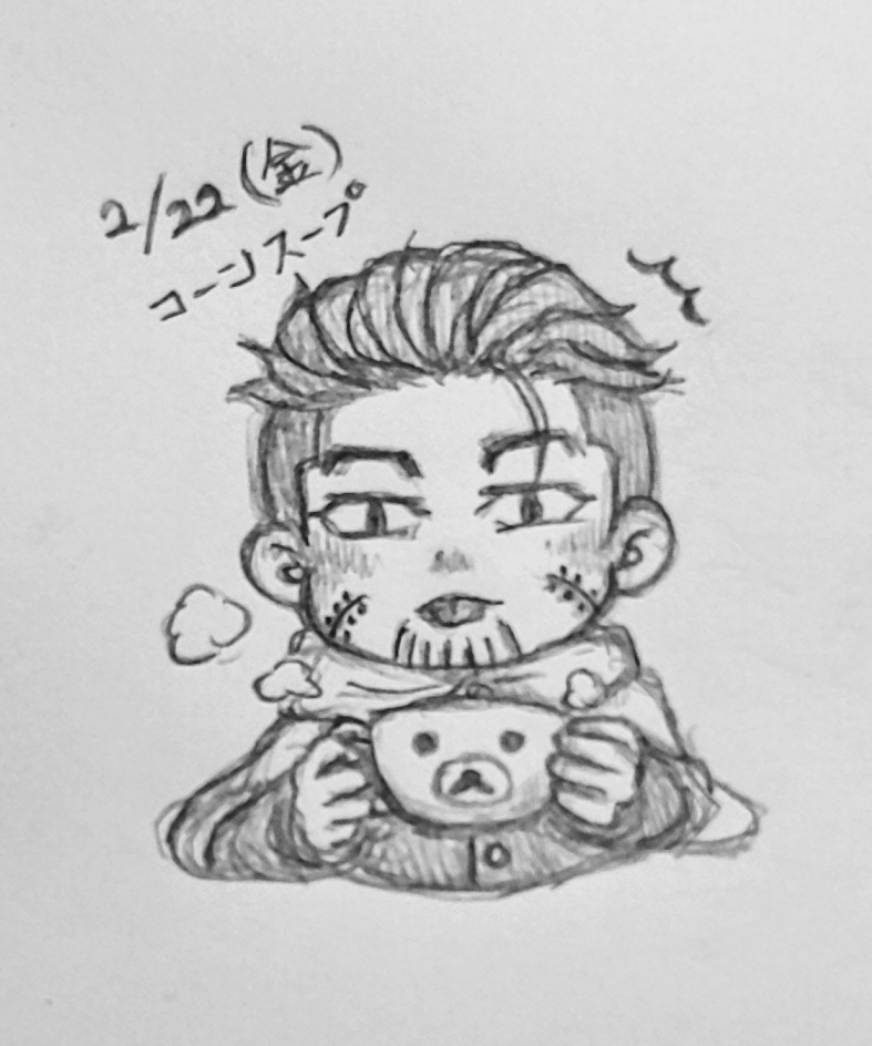 コーンスープ飲む 猫舌 オガタ