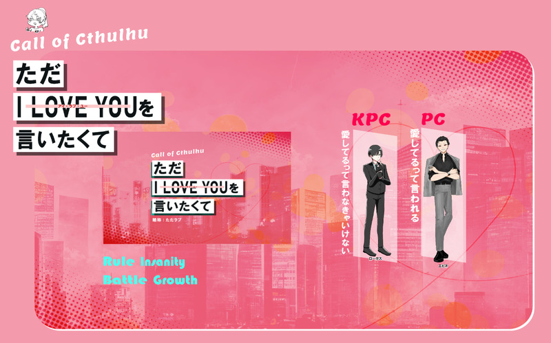 _zwei_zwei☆quiet followMEMO「ただI LOVE YOUを言いたくて」KP:ゆきまるさん KPC:黒瀬 夜斗 (くろせ やと)PL:ツヴァイ PC:劉 黎星刻(ラウ リーシン) シナリオクリア噂のただラブ回していただいた!激重感情向けられるのおもろ~~!!この子達本当に可愛いね~! Tap to full screen (size:1348x841).Repost is prohibited Let's send reactions! freqpopularsnackothersPayment processing Replies from the creator Follow creator you care about!☆quiet follow _zwei_zweiMEMO「君と物語のパラドックス」KP:ツヴァイ KPC:十亀 勝利 (とがめ しょうり)PL:のの字さん PC:鳩羽 永吉 (はとば えいきち)ENDB 両生還最近沢山永吉くんと会えて嬉しいです^^また色んなシナリオ連れて行くね! _zwei_zweiMEMO「殺していいのは呼吸だけ」KP:ツヴァイ KPC:十亀 勝利 (とがめ しょうり)PL:のの字さん PC:鳩羽 永吉 (はとば えいきち)ENDA 生還サクッとホラーのシナリオで気に入っております^^永吉くんずっと出目が偉くて…!偉吉だよ!! _zwei_zweiMEMO「星を喰む」KP:ツヴァイ KPC:十亀 勝利 (とがめ しょうり)PL:のの字さん PC:鳩羽 永吉 (はとば えいきち)ENDASAN値回復してきたお!ついでに十亀くんの立ち絵を新調しました! _zwei_zweiMEMO「心臓がちょっとはやく動くだけ」KP:ツヴァイ KPC:十亀 勝利 (とがめ しょうり)PL:のの字さん PC:鳩羽 永吉 (はとば えいきち)END1 両生還臨界点に引き続き継続で回させて頂きました!永吉くんが可愛いから兄貴も優しくしちゃうんだな~ _zwei_zweiMEMO「臨界点」KP:ツヴァイ KPC:十亀 勝利 (とがめ しょうり)PL:のの字さん PC:鳩羽 永吉 (はとば えいきち)END2 両生還可愛い舎弟で来てくれました~!カッコいい兄貴出来て良かった~~~! _zwei_zweiMEMO「GOZARCA」KP/SKPぶんけ/chizuPL一覧がーすー、ゆに、のりたま、りーすた、ちくま、じぇい、ふゆ、まこっちゃん、めいこ、ゆう、らび、ツヴァイ、はすみ、黒ゴマ、るな、のの字、ラムネ、六おに、こめた、きょーてら、ふぃお、なつめろでぃ、睡、そら(敬称略)4生還20殉職 2 recommended works ゆきのすけMEMO「山羊の歌は謡えない」第3話 舞台にのぼりてKPゆっ子さんPLオダマキさん、すわさん、ぽてちさん、ゆき2020/09/10-12 volcano69109DOODLE某人的手 2 .*・゚銀華.゚・*.INFO卓報告です。CoC【初恋性ストックホルム症候群】KP:しきさん/山花 耀夜PL:銀華/篝草 火花探索者生還「……ばーか」何語ってもネタバレ喋りそうなので一言!!これは好きになるしかねぇじゃねぇかぁぁぁぁ!!!!大好きです!!!最高のシナリオをありがとうございます!!!🥰🫶🩷 194DONE僧珀天→無惨様です 隠れわんわINFO「ニャルロックフェスティバル!」にいってきたよ!楽しかった〜!! Oops_jixuxoDOODLEPW: 18↑? 2 おかか🍙PROGRESS涼と樹のカラー、久しぶりに描いた全体図はバレンタイン頃に🍫💕 2 yomitsukinowaMOURNING新選組刀並べたやつの綺麗なバージョンです (ミンミ)TRAININGいちゃらぶ・🔞練習用パネルトラップ8番 鼻もぐリクエストcp アヴポルこの角度で鼻もぐってできるのかな…難しい