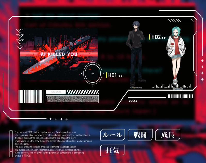 hirrru2424☆quiet followMEMO2/11.12「AI KILLED YOU」KP:アルドラさんPC/PL:神立後 晴(カンダツゴ ハレ)/あかみゃんさん 叢雲 天弓(ムラクモ マユ)/Jill END2 #Jill通過記録 Tap to full screen (size:857x678).Repost is prohibited Let's send reactions! freqpopularsnackothersPayment processing Replies from the creator Follow creator you care about!☆quiet follow hirrru2424MEMO2025/10/11クトゥルフ神話TRPG「烏が群れては、極彩色」𝐊𝐏:楠木HO1 蟻乃心音 / アルドラHO2 ルカ / えのきHO3 鬼灯燈羽 / れとHO4 淡國絃羽 / JillEND A hirrru2424MEMO2025/10/10クトゥルフ神話TRPG「600 depth アンティキティラ」𝐊𝐏𝐂/𝐊𝐏:京樂 筆 / Jill𝐏𝐂 京樂 未來 / あかみゃん(敬称略)特殊エンド hirrru2424MEMO2025/10/09クトゥルフ神話TRPG「つきない夜に。」𝐊𝐏:アルドラHO1 近江 清秋 / JillHO2 神子 / まふぃん(敬称略)END1▸ 両生還にてシナリオ終了 hirrru2424MEMO2025/10/05クトゥルフ神話TRPG『秋の友霊』KP:JillHO1:退魔師 紀律 玲 / ごたかHO2:女子高生 矢野 椛 / くらげ。(敬称略)END A▸ 両生還にてシナリオ終了 hirrru2424MEMO2025/10/02クトゥルフ神話TRPG『君のためのヒポクリシー』KPC/KP:月影 怜桜 / 悠輝PC 椋月 燐禰 / JillEND:B-2▸ 両生還にてシナリオ終了(敬称略) hirrru2424MEMO2025/09/30クトゥルフ神話TRPG『OO1/138』KP:JillHO1:HO1 イザリス / 竹裏ととHO2:HO2 リルカ / あずEND A(敬称略) related works hirrru2424MEMO2025/10/09クトゥルフ神話TRPG「つきない夜に。」𝐊𝐏:アルドラHO1 近江 清秋 / JillHO2 神子 / まふぃん(敬称略)END1▸ 両生還にてシナリオ終了 hirrru2424MEMO8/29「あトの祀リー緋の宴ー」KP:竹裏ととSKP:あずPC/PLHO1 跡部九郎/JillHO2 花房緋奈/あかみゃんHO3 巻帯翠扇/さかなHO4 御影 亙/吹藍エンドー「回帰」(敬称略) hirrru2424MEMO2025/10/11クトゥルフ神話TRPG「烏が群れては、極彩色」𝐊𝐏:楠木HO1 蟻乃心音 / アルドラHO2 ルカ / えのきHO3 鬼灯燈羽 / れとHO4 淡國絃羽 / JillEND A hirrru2424MEMO2/9「水天一碧で朝凪を望む。」KP:岬さんPC/PL:白百合 千絃(シラユリ チズル)/TRIGGERさん 皆瀬 陽継(ミナセ ハルツグ)/JillEND1‐EX hirrru2424MEMO2/11.12「AI KILLED YOU」KP:アルドラさんPC/PL:神立後 晴(カンダツゴ ハレ)/あかみゃんさん 叢雲 天弓(ムラクモ マユ)/Jill END2 hirrru2424MEMO5/22「静なるテロリスタ‐HO童子 個別導入‐」KP:あかみゃん さんSKP:ニケア さんPC/PL:藤堂 鼎(トウドウ カナエ)/Jill hirrru2424MEMO2/12「ひとりじゃない夜」KP:あかみゃんさんPC/PL:加賀 戎伍(カガ ジュウゴ)/Jillプル夜SS hirrru2424MEMO12/17「やがて文字になる日まで」(KPレス)PC/PL:躑躅ヶ崎 景虎(ツツジガサキ カゲトラ)/Jill代理で自分探しの旅をした気分でした! hirrru2424MEMO5/20「異説・狂人日記」KP:さかなさんPC/PL:山縣 蓮彌(ヤマガタ レンヤ)/JillエンドB