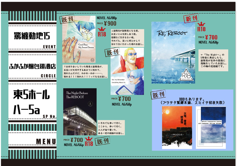fucafuca02 ふかふか梱包廻漕店の二次創作作品試し読みと、同人誌即売会のお品書き。活動ジャンルは以下の通り。ぷろめあ:イグレミ ☆quiet follow Yell with Emoji POIPOI 6