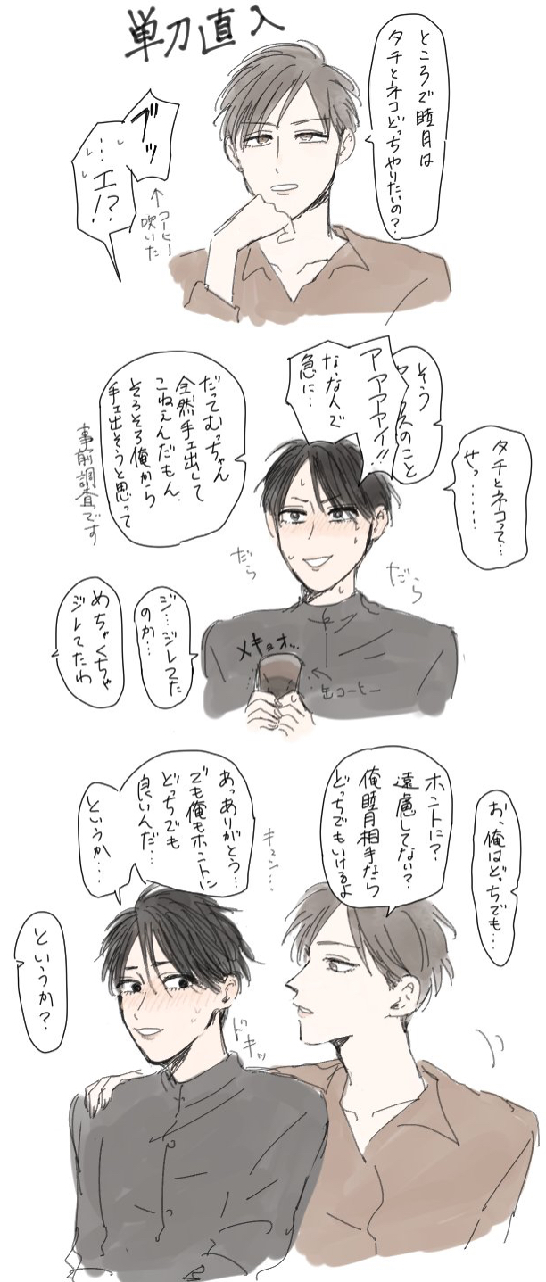 創作ビーエルむっちゃんちーちゃんがリバップルになるにあたっての話し合い(?)のお話です(一瞬で終わる)。マジで801。この2人が喋ってる絵は今まで上げたことなかった気がする!