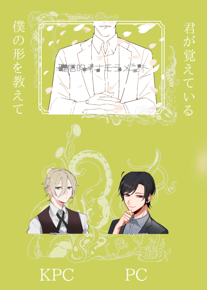 kohaku_coc_☆quiet followPROGRESSCoC「確信的イナモラメント」KPC/KP: 緋色 颯真/心花咲PC/PL: 流川 氷助/ぷねむっとさんエンドACoC「君はきかないから」KPC/KP: 流川 氷助/ぷねむっとさんPC/PL: 緋色 颯真/心花咲エンドA show all(+1 images) Tap to full screen (size:717x1004).Repost is prohibited Let's send reactions! freqpopularsnackothersPayment processing Replies from the creator Follow creator you care about!☆quiet follow kohaku_coc_PROGRESSCoC「煌煌」KP:かきあげさんHO金: パルジファルHO碧: クンドリHO輝: アーリンダルHO煌: アーダエンド3B「救済の詩編」 kohaku_coc_PROGRESSCoC「そうだ!餃子パーティーしようぜ!」KP/KPC: 榛原 瑠衣/yukiさんPC/PL: 水城 悠斗/心花咲 沖内 理匡/ひまねこまさん 夏白 菊治/ているさんシナリオクリア kohaku_coc_PROGRESSCoC「スーサイデッドメアリンク」KPC/KP: 薺野 光祐/心花咲PC/PL: 新月 奏真/とりまのレンさんエンドA kohaku_coc_PROGRESSCoC「確信的イナモラメント」KPC/KP: 雛菊 瑛翔/心花咲PC/PL: 應梦/ゆゆゆさんエンドB シナリオクリア kohaku_coc_PROGRESSCoC「ディアブルの祈り」KP: ナナセさんHO1尤:新月 奏真/とりまのレンさんHO2凡:薺野 光祐/心花咲エンド1 両生還 kohaku_coc_PROGRESSCoC「6号線4時44分発の」KPC/KP: 狐兄/ゆゆゆさんPC/PL: 紫鏡/心花咲シナリオクリア recommended works go8ch_poooSPUR ME雑記気づいたんだけど自分の2次元の男キャラの好み分かりやすすぎる 2人似てる所が多い(トワとオーエンの話)推しが2人いると同人誌描きたい欲が散漫になる すぐに手を動かせないのがもどかしい プロットだけ時間ある時にいろいろ書き溜めてるんだけど整理してたら描こうと思ってたカイオエのプロット消えててバチ病んだ 手直し前の荒プロットが残ってたのか不幸中の幸いだけどすごい萎えて心折れそう 頑張れ(自虐) H__ymSrktDOODLEすぺらくがき…べりすずちゃんも描きたい💓すぺみてると男の子描きたくなる funato_cocSPOILERぼ4表情差分。シナリオ終了後に描いているため、一応ネタバレ注意。 すモモーヌDOODLE第2形態、スーワグ触手やら女体化(公式)やらのラクガキなのでご注意ください sssssoukoDOODLEENG&JP verOriginal ver →https://www.pixiv.net/artworks/127404771 7 sabi_asagi126DOODLEこねこねねねぱん話題になってたホームベーカリーの説明書パロです🍞🤖 ayato_pgsINFOCoC「ヘイムダルの眼、或いは君の温度。」PL/PC まめさん/道生 舞也KP/KPC 綾斗/九重 直虎-生還- 2 Xào TỏiDOODLE"Tặng em .......... một bông hồng" よるるDOODLE天使組のまとめ。単体の落書きとかざっくり関係図とかです。ちゃんとまとめるって過去の私がずっと言ってる。 10