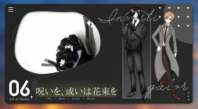 kohaku_coc_☆こそフォロ作業進捗CoC「呪いを、或いは花束を」KPC/KP: 薺野 光祐/心花咲PC/PL: 新月 奏真/RENさんシナリオクリア タップで全画面(原寸:1638x909)無断転載禁止 リアクションをたくさん送って応援しよう! よく使う人気おやつその他支払処理中 作者からのリプライ 気になる人をどんどんフォローしよう!☆こそフォロ kohaku_coc_作業進捗CoC「どうきょにんがねこになった……!!」KPC/KP: 榛原 瑠衣/yukiさんPC/PL: 水城 悠斗/心花咲シナリオクリア kohaku_coc_作業進捗CoC「STAY IGNITE」KPC/KP: 榛原 瑠衣/yukiさんPC/PL: 水城 悠斗/心花咲エンドA 両生還 kohaku_coc_作業進捗CoC「もっとそばにいてよ」KPC/KP: 榛原 瑠衣/yukiさんPC/PL: 水城 悠斗/心花咲シナリオクリア kohaku_coc_作業進捗CoC「可惜夜に願いを込めて」KPC/KP: 新月奏真/RENさんPC/PL: 薺野 光祐/心花咲エンド 両生還 kohaku_coc_作業進捗CoC「呪いを、或いは花束を」KPC/KP: 薺野 光祐/心花咲PC/PL: 新月 奏真/RENさんシナリオクリア kohaku_coc_作業進捗CoC「今日、KPCの実家に行く」KPC/KP: 新月 奏真/RENさんPC/PL: 薺野 光祐/心花咲シナリオクリア