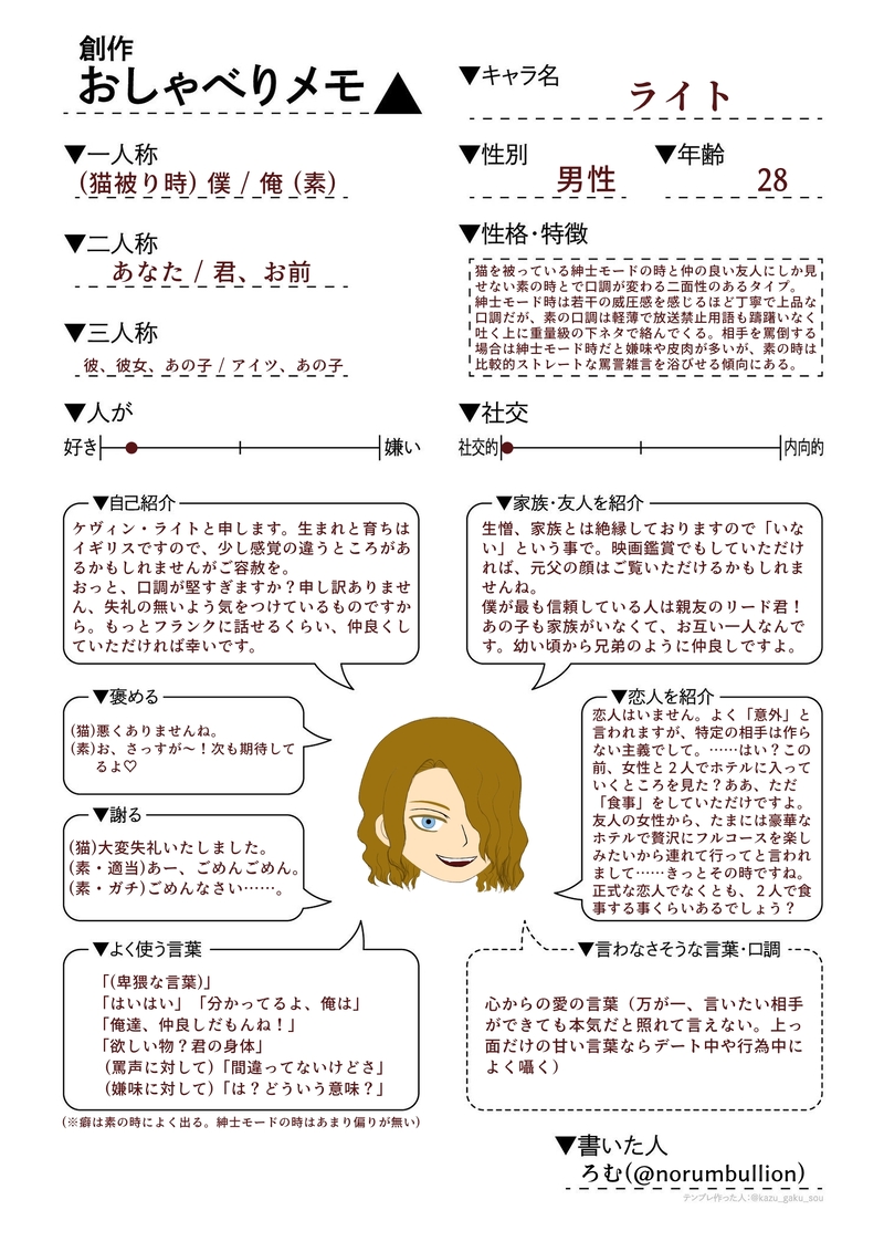 らむ酒☆quiet followDONE既に結構喋らせてるので今更ですが、おしゃべりメモのテンプレを拝借。せっかくなのでライト氏には紳士モードでいろいろ紹介してもらいました。相変わらず文字数多め #テンプレお借りしました iBorrowedTheTemp. #創作 creation #OC show all(+1 images) Tap to full screen (size:1447x2048).Repost is prohibited Let's send reactions! freqpopularsnackothersPayment processing Replies from the creator Follow creator you care about!☆quiet follow らむ酒DONEカリスマAV男優のパロです らむ酒DONE髪の崩れ/整いテンプレお借りしました。 らむ酒DONE「うちの子へ50の質問」終わりました。50問もあるとなかなかのボリュームですね。ライト氏のせいで普通に18禁用語が出てきますのでご注意 33 らむ酒DOODLEちゃんとしたクリスマス絵は無理そうという事で落書き(「黒」と回答したバージョンの反応は気が向いたら描きます) 6 らむ酒DONEライト氏の人体実験の記録の話。下ネタ。 7 らむ酒MEMOOC達の転職先として考えている店の暫定設定メモ。内容は随時変更されます 1260 related works 9花・DONE⚠媚薬盛られた拓海 / takumi under aphrodisiacテンプレ借りました 2 Karen_Sn0wDOODLE【えふえふ小話】うちの子。ザルペト夫婦の何気ない日常🐱🐰お家にいる時はだいたいくっついてるいつでもラブラブ夫婦です。2枚目はテンプレお借りしましたなザルクン。 2 めめめめめMEMOPLの成分分析まとめ(テンプレ色々) 11 Karen_Sn0wDOODLE【えふえふピクチャ】うちの子。ハート💕ください!テンプレお借りしました。色んなハートとそれぞれの反応描けて楽しかったです😊 てつジMEMOふってくれテンプレ 多くなったからまとめてここにドーン もしかしたらそのうち増えるかも? 【前提】そこそこに交流があるモブ相手とする。(じゃないと誰?率がばか多くなる為) 8 めめめめめMEMO🍩📝 8 夏タローDONEテンプレ集多方面からいっぱいお借りしました。 15 らむ酒DONE「うちの子へ50の質問」終わりました。50問もあるとなかなかのボリュームですね。ライト氏のせいで普通に18禁用語が出てきますのでご注意 33 めめめめめMEMO🍩(*˙ᵕ˙ *) recommended works muloDOODLEわんわんお 2 kyoDOODLE 塚森のぞむ👓PROGRESSコットマン水彩紙が明日届くので準備準備 夢想曲MOURNINGサークルカットでこの構図が結局ボツになったのでラフだけ描ききって供養。 水野 ユズDONEアリスくんも描けたよ ノヽシ关リPAST志摩(2018) harunoDOODLEいにしえの創作('ω') おこめDOODLE矢羽根模様和柄第三弾です。ちょっと細々しすぎましたね。 奴濃(ぬだみ)DOODLE自創作クロスオーバーで「吸血鬼すぐ死ぬ」のY談おじさんパロ(改変多め・トレス)勢いで描いたので何もかもが雑です※漫画内に出てきたキャラクターの性癖は全て妄言と思ってください(3/18追記)様々な部分を修正して画像の差し替えをしました 4