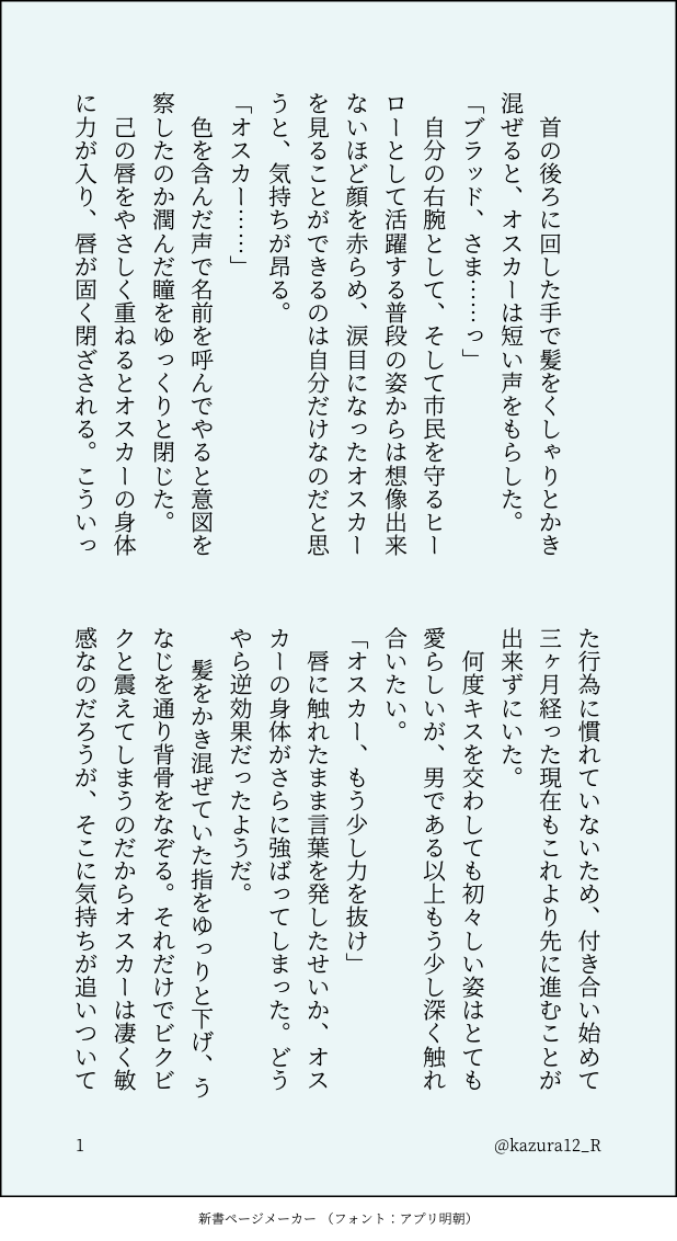 kazura12_R☆quiet followDONE少しずつ慣れさせようと鋼メンタルで頑張ってたのに秒でぶっ壊れたブラッドさまのお話です。頭空っぽにして読んでください。 show all(+1 images) Tap to full screen (size:618x1132).Repost is prohibited Let's send reactions! freqpopularsnackothersPayment processing Replies from the creator Follow creator you care about!☆quiet follow kazura12_RDONE12/18イベント合わせで出した無料配布SSです。ブラッドさまは幼いオスカーに手を出さないと思うんですがそれはそれとして手を出して欲しいので抱いて頂きました。 2884 kazura12_RDONEただ致してるだけのブラオス。初夜です。 1969 kazura12_RDONE2周年ガチャが出なすぎて心を癒すために書きたいところだけ書いたブラオスポメガバース 1677 kazura12_RDONE書きたいとこだけ書いたブラオス kazura12_RDONE書きたいトコだけ書いたブラオス kazura12_RDONEブラオスwebオンリーおめでとうございます!先日のオンリーで無料配布したものを展示させて頂きます。 1244 recommended works maneco3612DONEブラオス結婚おめでと〜〜〜!!のきもち 1443 kazura12_RDONE書きたいとこだけ書いたブラオス 996eros9bsPROGRESSブラオスこんな感じです 2 すいぎんこDONEオスカーさんが女体化してて、にょパイセンにドレスアップされて、ブラッドさまと食事行く話です。私が書きたいものだけ詰め込んだやつです!誤字脱字は後日訂正します。 11578 tenzoooooPAST花怜一枚絵、一枚まんが系まとめ。増えたらここに足します。 6 winwynneDOODLE phalloidineDONE满18周岁者请输入太宰治和中原中也的生日共八位数阅读此文 9397 混彩カオスDOODLEめりくり~~~🎄 mixmix2DOODLEてならし 絵が描けん