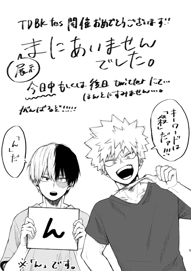 natuno723☆quiet followPROGRESSTDBKフェス開催おめでとうございます!!!展示間に合いませんでした!!!!!すみません!!!!! Tap to full screen (size:1049x1488).Repost is prohibited Let's send reactions! freqpopularsnackothersPayment processing Replies from the creator Follow creator you care about!☆quiet follow natuno723PROGRESSTDBKフェス開催おめでとうございます!!!展示間に合いませんでした!!!!!すみません!!!!! natuno723DOODLEワートリもっといろんな子描きたい…増える予定…予定… 2 natuno723DOODLE最近気になってる2人、、、可愛い、、、 natuno723DOODLE鬼滅 かまぼこ落書き 3 natuno723DONE捧げ物 帝幻 natuno723TRAININGガリガリ模写 5 recommended works 氷華(ヒョウカ)DONE(アイドル)ショート×(ファン)勝己な轟爆。●1枚目…コンサート中のショート。●2枚目…ショートのFAN全開の勝己。●3枚目…ショート全身のアップ。かっちゃんの額も赤く染まってるのを分かり易くする為に、ちょっと前髪を短めにしたら想定よりも幼くなったような……?2人共に高校生です。(ショートのラフはラルクのMy Dearをひたすら聴きながら描いてました) 3 ucha_rkrnPAST利こまと神社不破の落書き 2 unknownDONE亜白ミナ/怪獣8号 2 wyi_lowDOODLE怪獣8号 4 nou2uraDONE轟爆ヒーロー轟×カフェの店員爆のパロです。働き詰めの轟、勧められて行ったカフェで爆と出会う。爆の優しさと優しい料理に轟は、惹かれる。轟爆恋人未満です。以前ツイアップした物に加筆し、右爆祭に展示したものです。自分的には、お気に入りの一作です。 2962 そら🕊DONEハロウィン轟爆🍰💥 takaseDOODLE怪獣8号の保科さんと怪獣10号です。最近ジャクヤミが不調なので、しばらく違う絵が多くなるかもしれません。。(^^;) ayuDOODLE轟爆tdbk r18 vicious circle omake①⚠️vomit, breast milk, pseudopregnancy 2 eikokurobinPAST轟爆/仮免補講中/触手(ヘドロ) 4982